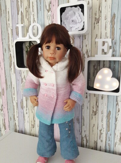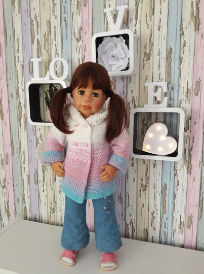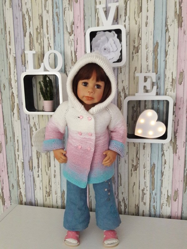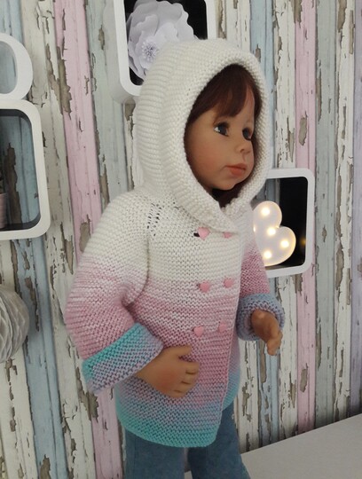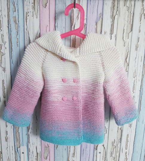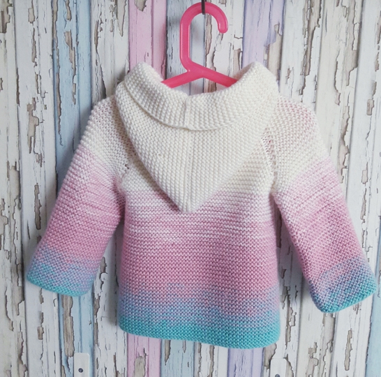 Das Cardigan wurde aus Bobbel wolle gestrickt dadurch entsteht der schöne Farbverlauf.