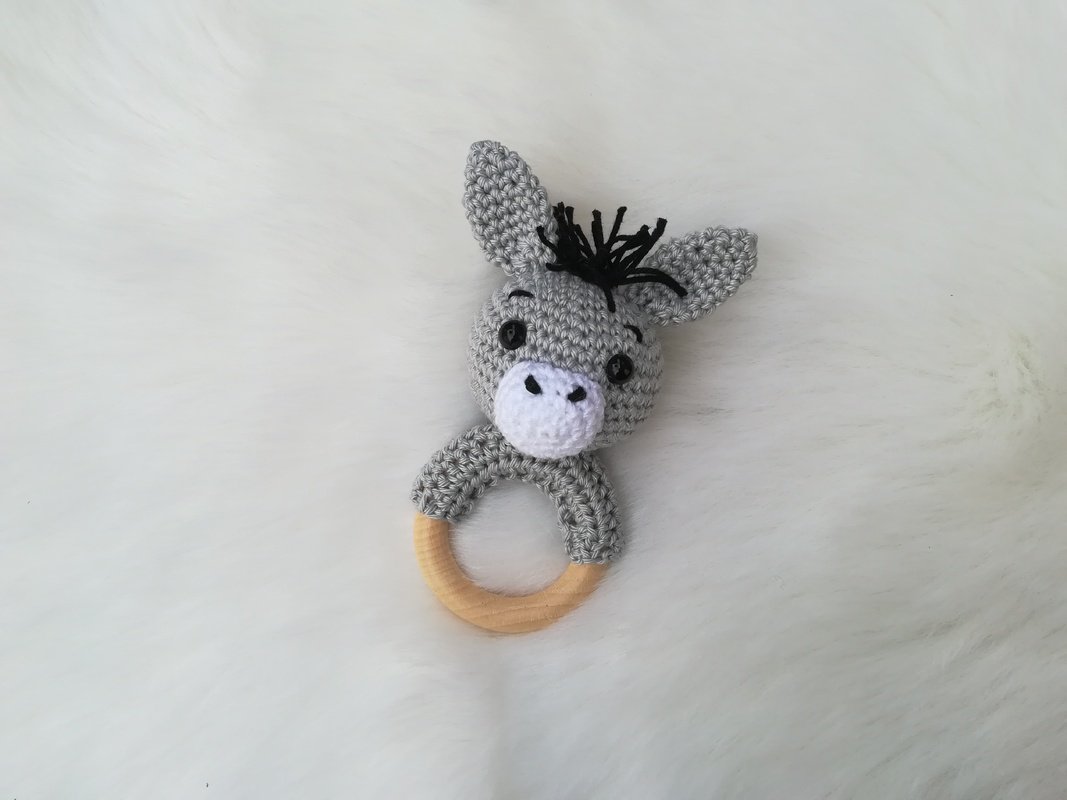 Mit Häkelnadel 3,0 mm und der Schachenmayr Catania Wolle wird die Esel Rassel