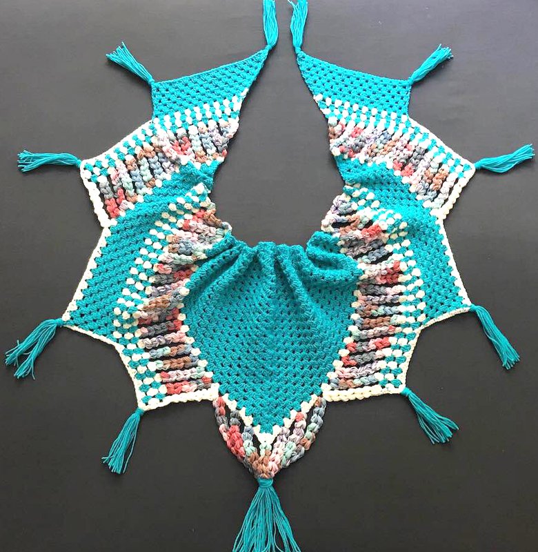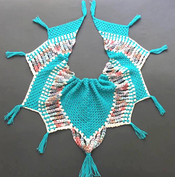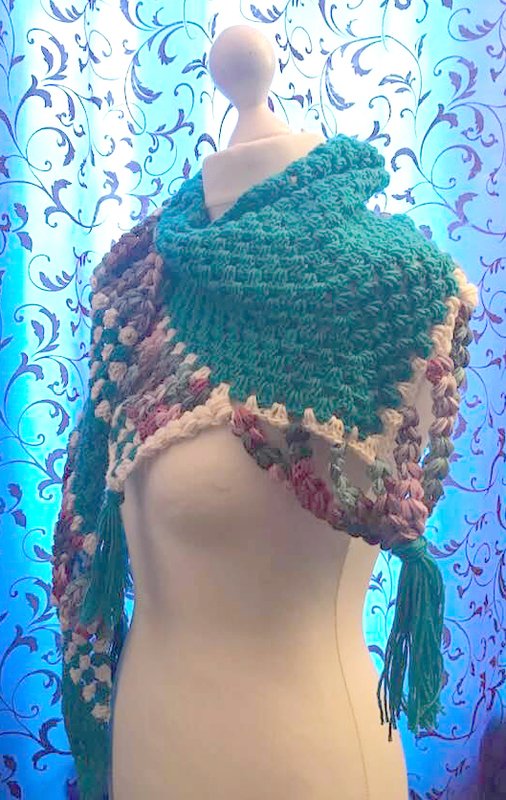 Das schöne Tuch / Schal PIRIPIRI ist eine wirklich schöne Handarbeit und auch garnicht schwer nach zu arbeiten...das Tuch besteht erstmal viele Reihen nur aus dem beliebten half Granny- Muster..dann kommen die netten Herzketten, die so stark an die Zuckerketten aus unserer Kindheit erinnern!