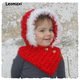 Natürlich kann er auch in anderen Farben geferitgt werden. Es kann problemlos die jacke noch drübergezogen werden, daher ein perfektes Kuschelteilchen für Kinder die nicht so gern ein Mütze tragen..