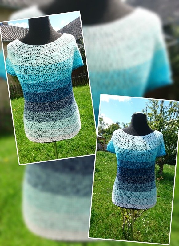 Die Anleitung ist geschrieben für Größe 44. Jede größe lässt sich ohne großes Umrechnen ganz einfach nachhäkeln.
