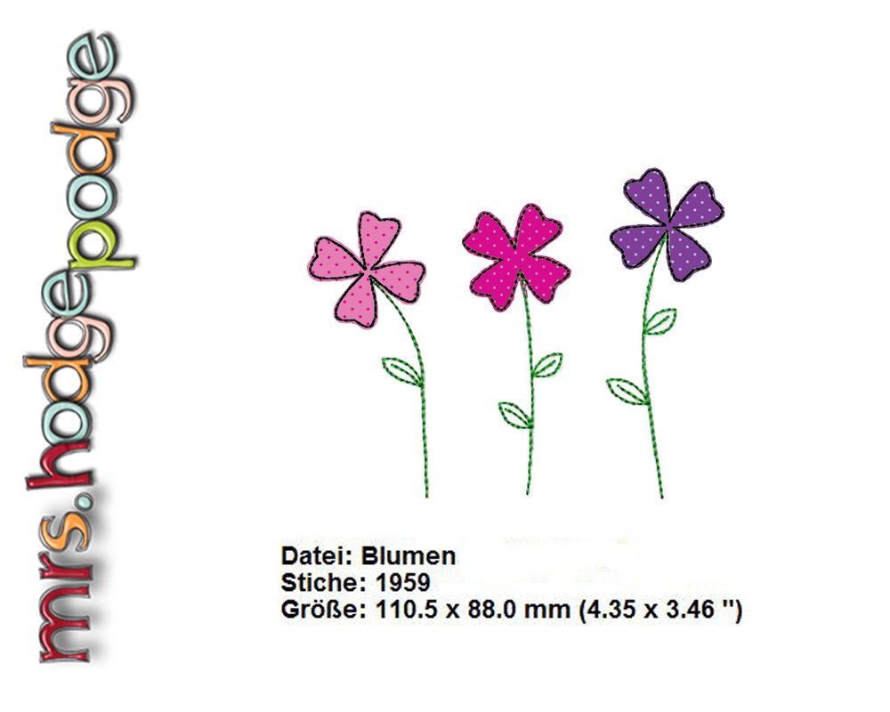 Mindestrahmengröße für die Stickdatei Blumen Doodle: 10 x 12cm.