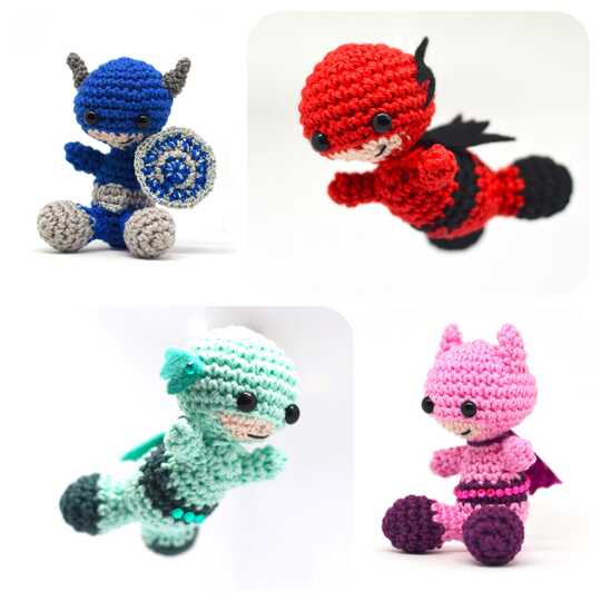 Die fertig gehäkelten Figuren eignen sich perfekt als Geschenk (Glücksbringer / Taschenbaumler) oder auch als Dekoration am Auto-Innenspiegel. Sie sind ca. 9cm hoch (unter Verwendung derselben Wolle). Auch als Baby-Mobile eignen sich vor allem die fliegenden Helden perfekt.
