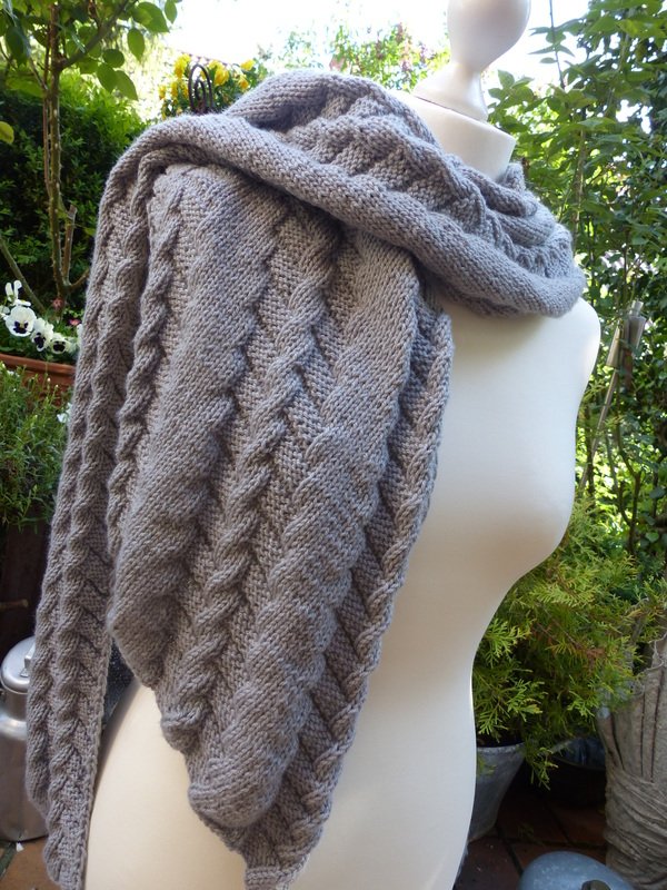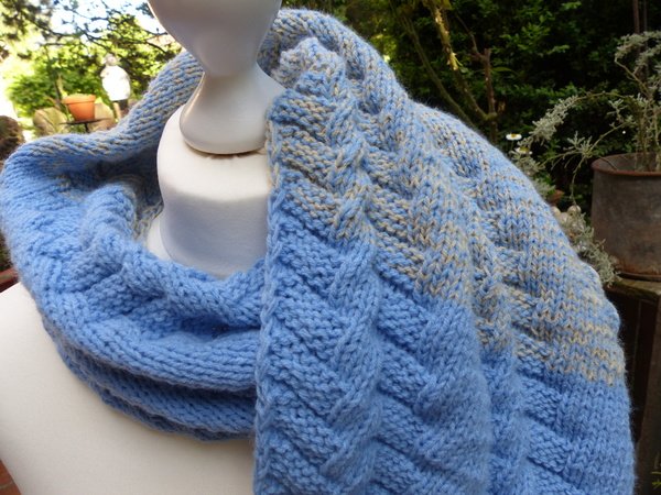 Es werden nur rechte und linke Maschen gestrickt, um diese Zopfoptik zu erhalten. Der Schal bekommt durch das Muster eine Schrägung, was ihm nochmals eine besondere Note verleiht.