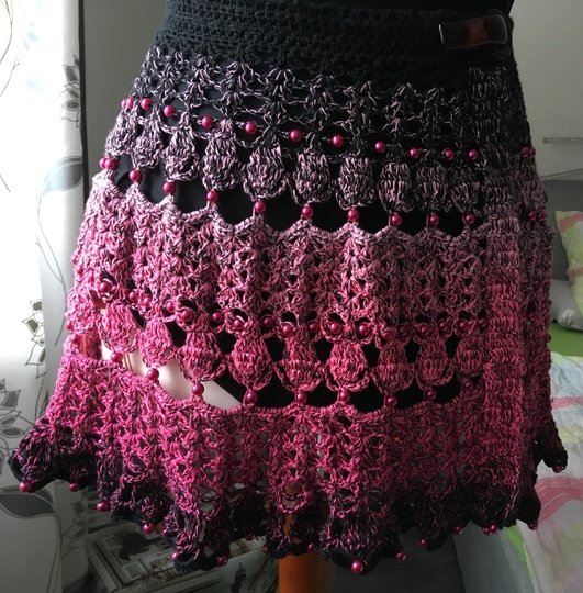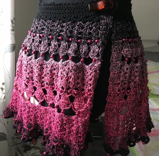 etwas für schon vorgeübte Häkelerinnen (durch das Einarbeiten der Perlen) ansonsten einfache Maschenfolgen.
