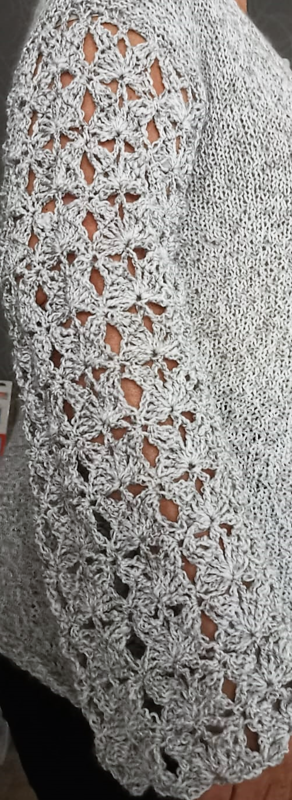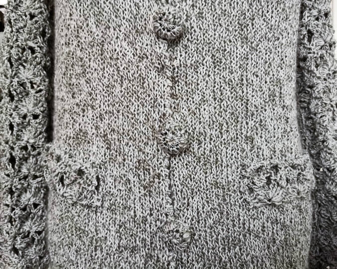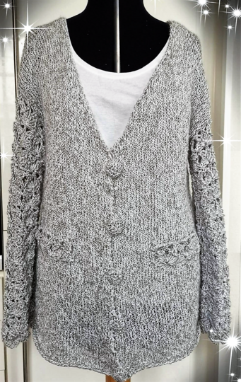 Kuschelweiche Strickjacke mit gehäkelten Ärmeln und umhäkelten Knöpfen - ein "must have" für alle die gerne stricken und häkeln!