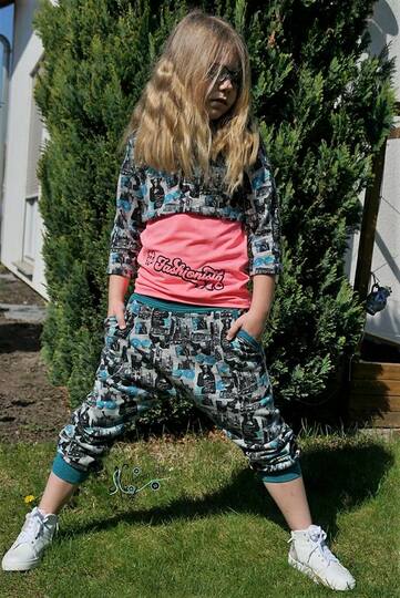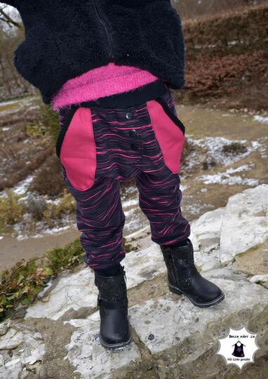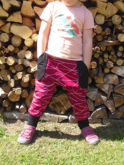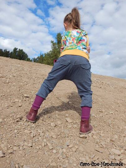 La Büx...eine Mischung aus Trainingshose, Haremshose und „Normalhosenzeugs“, wie Gummibund, Gürtelschlaufen, Taschen und Co. Du kannst sie am besten aus dehnbaren Stoffen wie zB. Sweat und Jersey nähen. Die Hose sitzt hüftig,ist mit einem tieferem Schritt versehen, absolut alltagstauglich, macht alles mit, ist sowohl für Jungs als auch für Mädels gut tragbar und macht auch als ¾ Büx eine gute Figur. Außerdem kannst du „La Büx“ auch als ganz schnelle Ruck-Zuck-Version nähen, falls die Zeit mal knapp ist ;o)