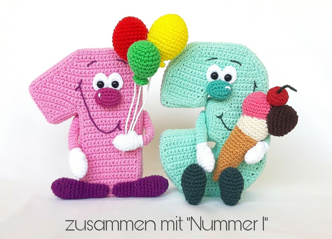 Die Materialangaben beziehen sich nur auf 1 gehäkelte Variante der Nummer 3. Bei beiden oder mehrerern Figuren müssen Sie die Materialangaben anpassen.