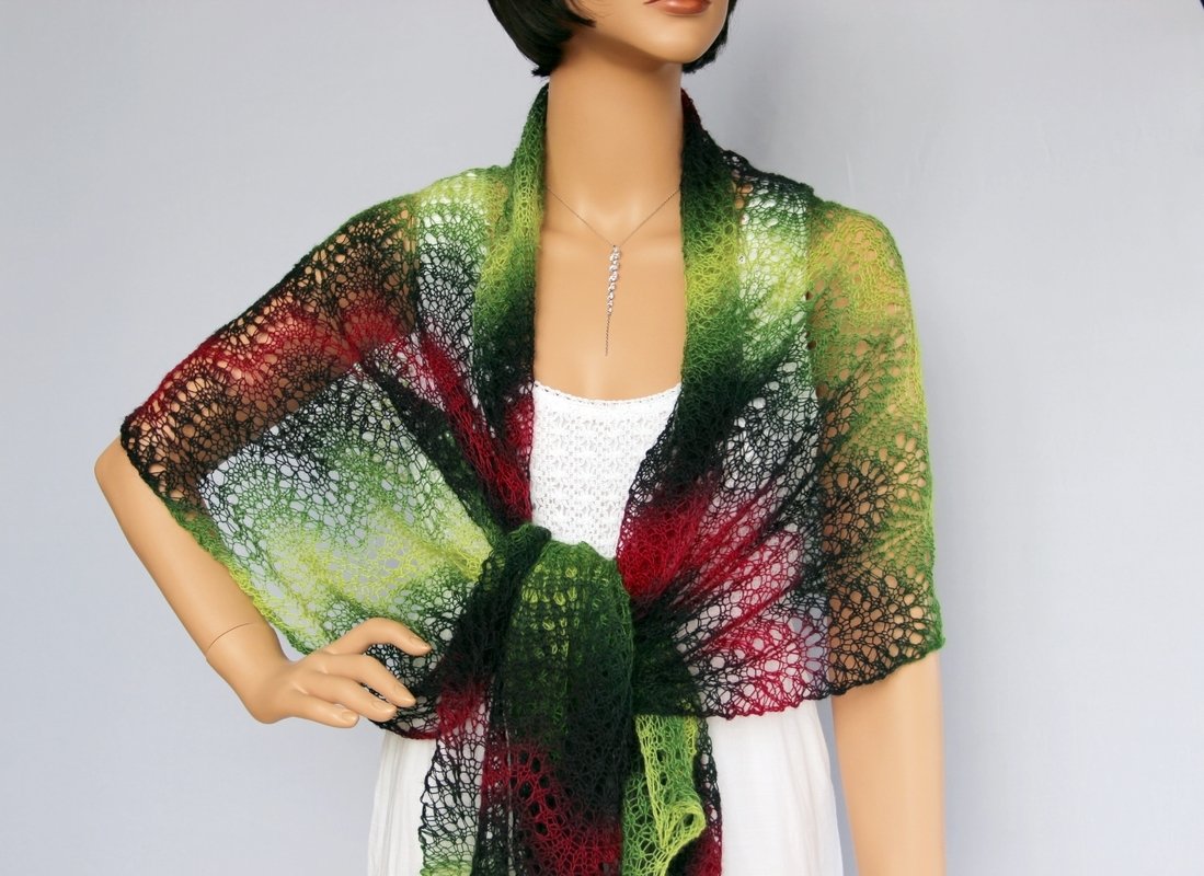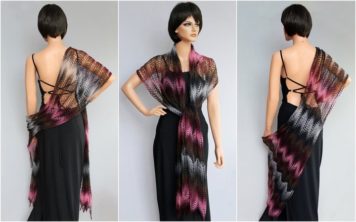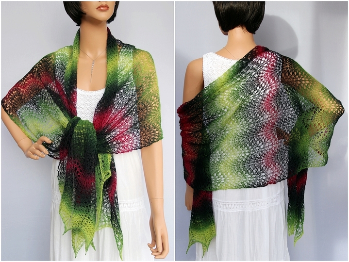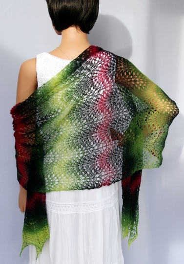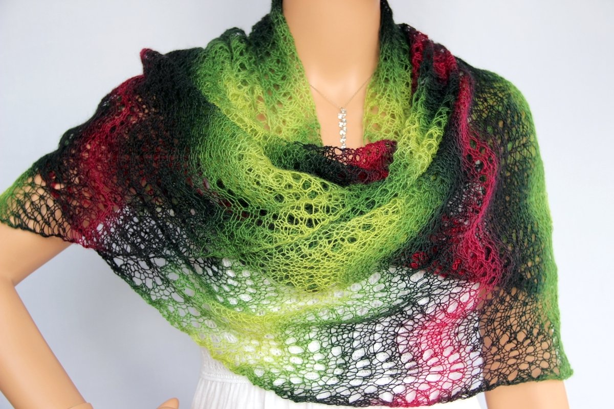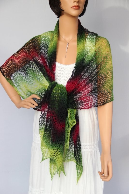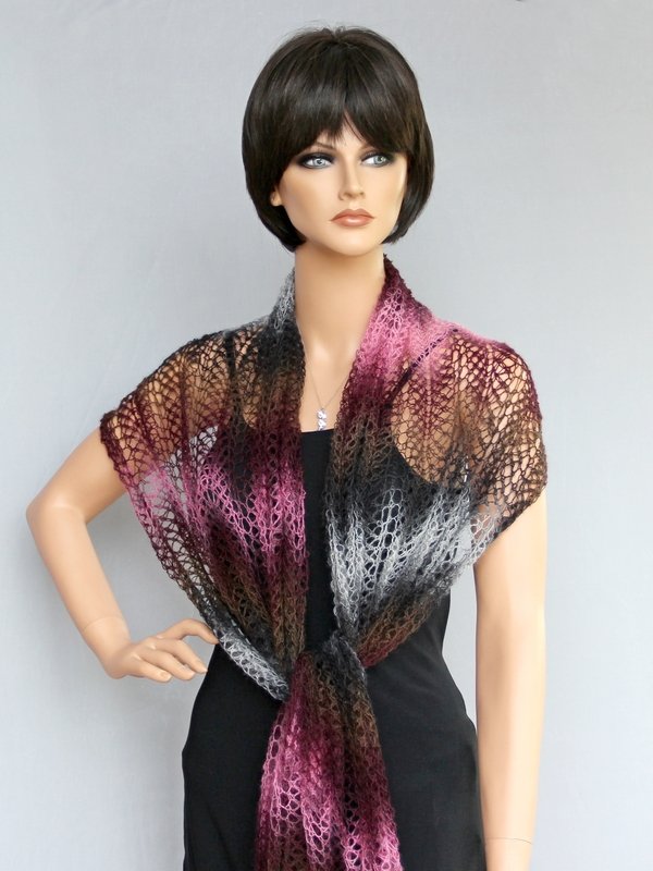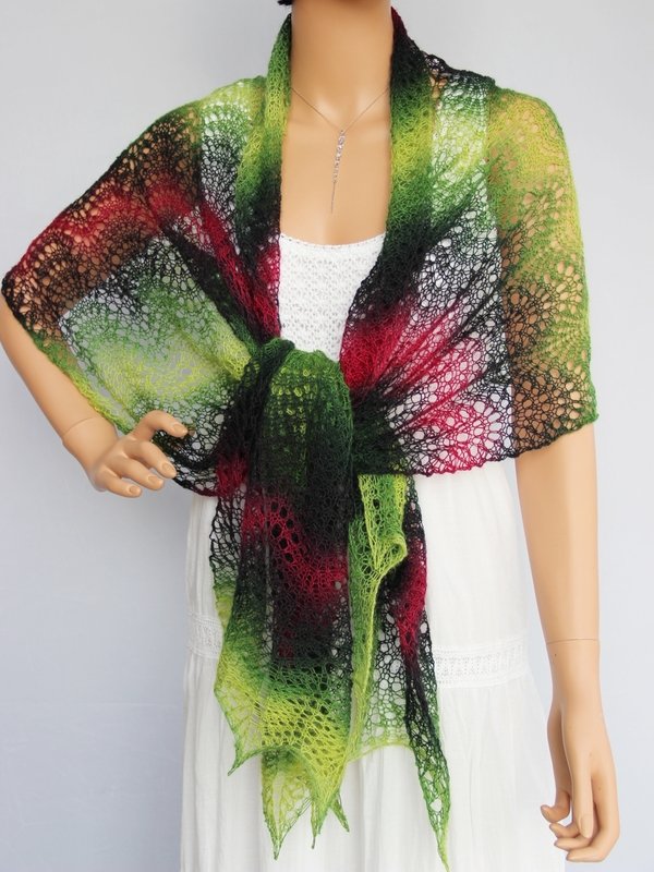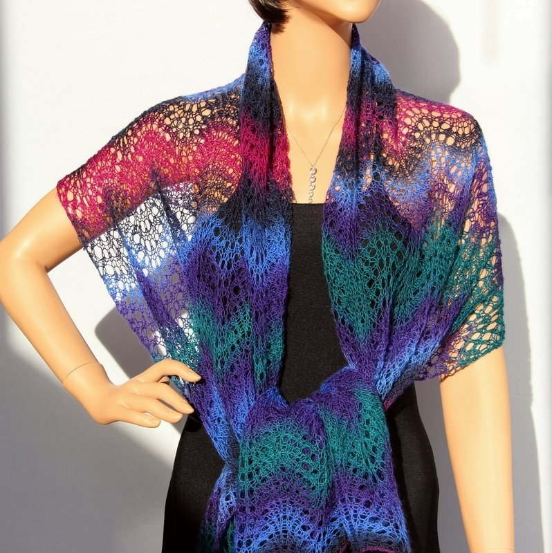 Das luftig-leichte Tuch ist ein absoluter Hingucker. Es kann schick zur Sommerparty, edel zum kleinen Schwarzen oder lässig gebunden im Alltag getragen werden. Die verschiedenen Tragemöglichkeiten lassen die Farbkombinationen immer wieder neu erscheinen. Schaut Euch gern dazu meine Fotos an. Es schaut so toll aus - und ist dabei leicht nachzuarbeiten, da sich genau zwei Musterreihen ständig wiederholen. Deshalb ist es ein Lace-Tuch für Anfänger.