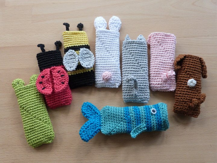 Die Anleitung zeigt dir, wie du ganz leicht die putzigen Modelle Hund, Katze, Biene, Frosch, Fisch, Schwein, Kaninchen und Marienkäfer häkeln kannst.