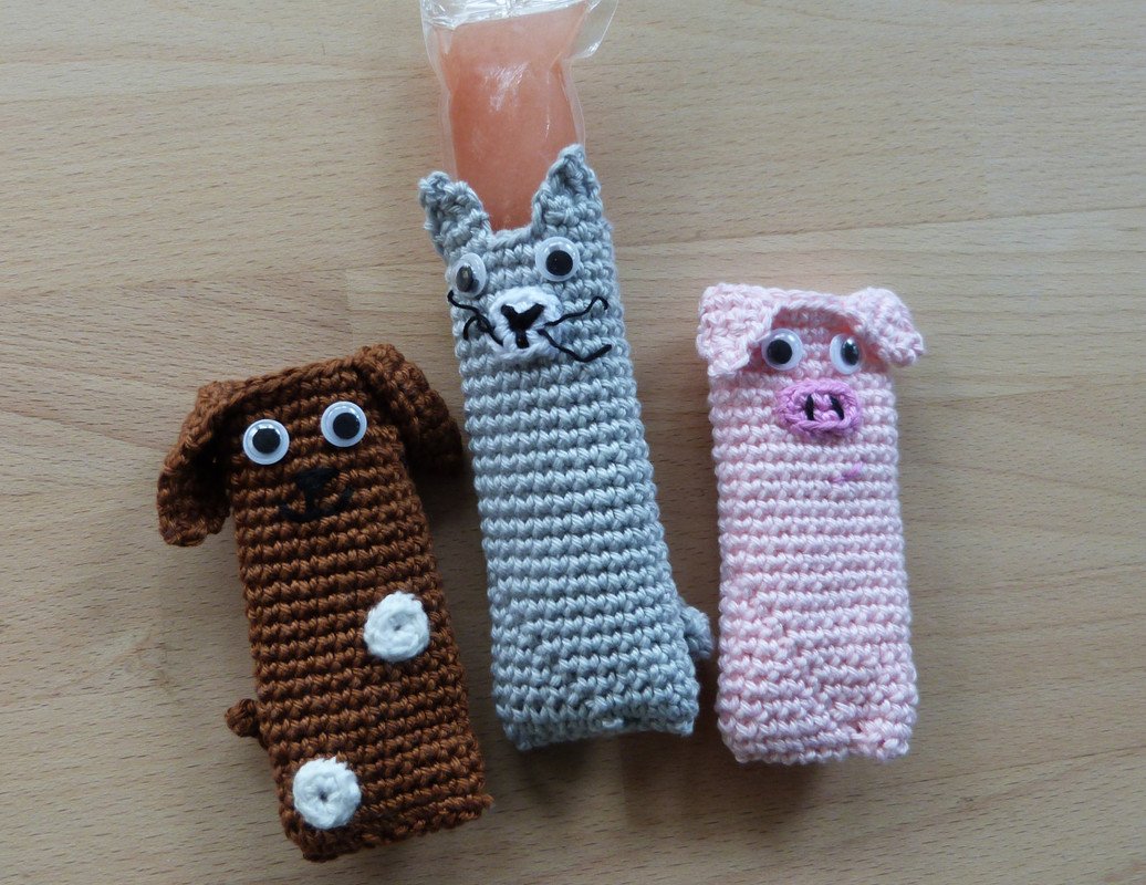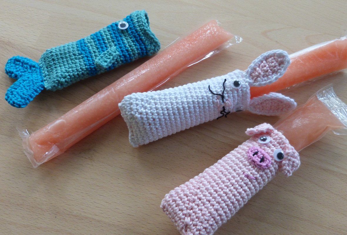 Deine Kinder lieben Wassereis aber keine kalten Finger? Dann häkel ihnen doch lustige Wassereis-Hüllen in Tierform! Damit bleiben die Finger warm und trocken und das Eis schmeckt umso besser!