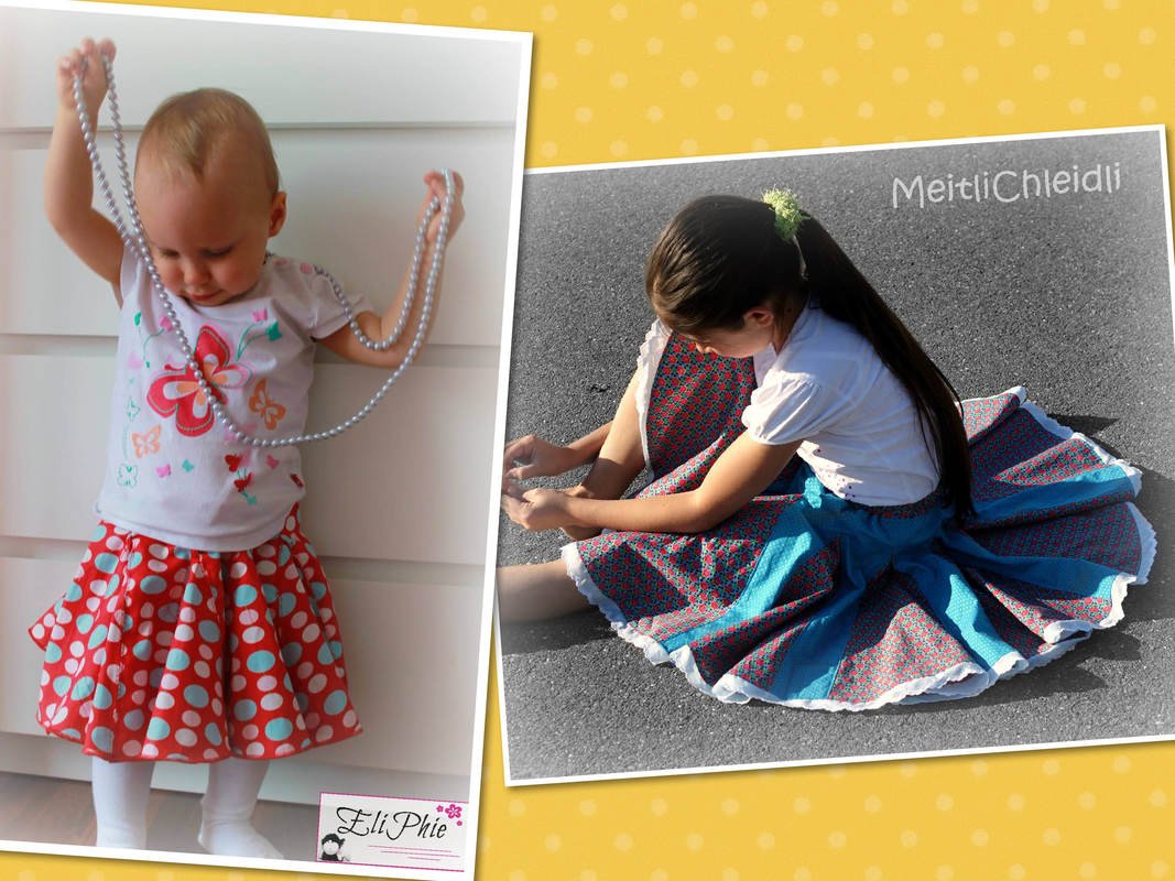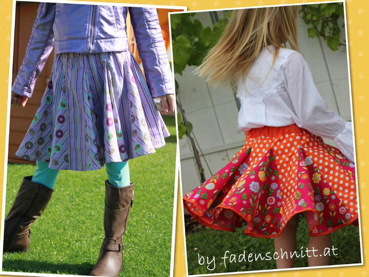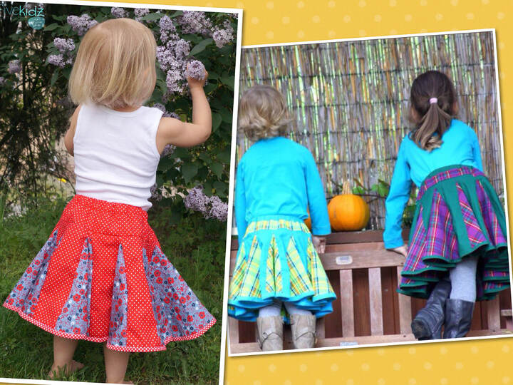 klecksMACS "Endless Summer" ist ein weit schwingender Rock, der jeden Drehtest der kleinen und großen Prinzessinnen mit Bravour besteht. Ob fröhlich bunt, sportlich abgesteppt oder im Patchwork-Stil, alles ist möglich. Im Sommer aus leichter Baumwolle, im Winter aus Jeans oder Cord ... für jede Jahreszeit der passende Drehrock.