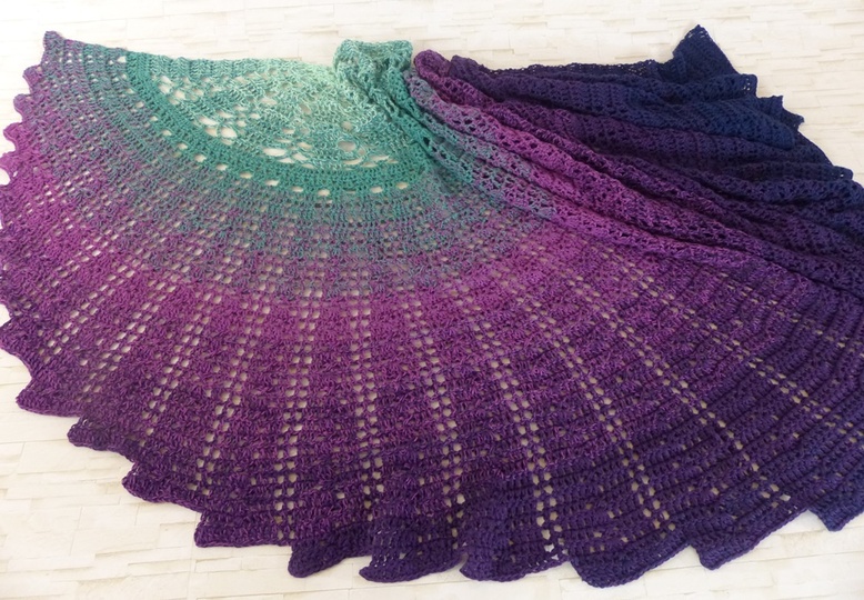 "Hyalma" (übersetzt Muschel) ist etwas Besonderes, ein halbrundes Tuch in Form einer Muschel. Das Tuch sieht extravagant aus, passt sowohl zum Kleid oder auch an den Strand.