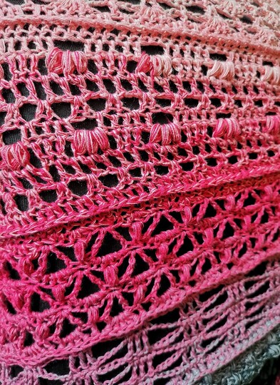 Kenntnisse: Luftmaschen, Stäbchen, vordere u. hintere Reliefstäbchen, halbe Stäbchen, feste Maschen, Doppelstäbchen, halbe Stäbchen, Büschelmaschen
