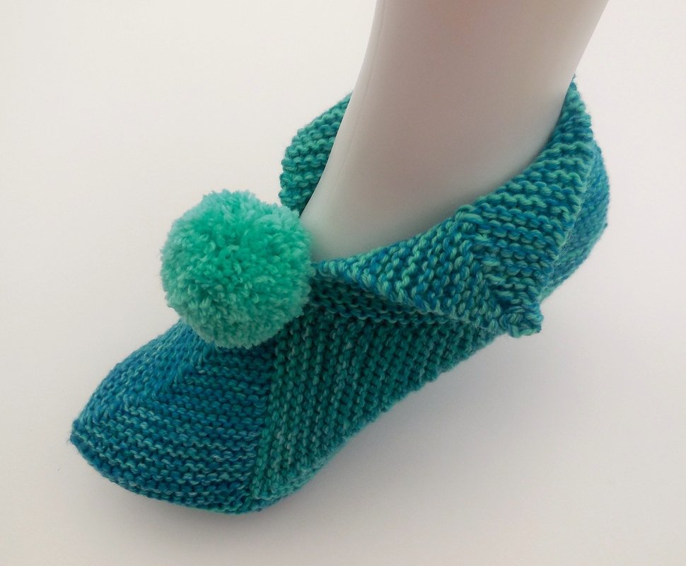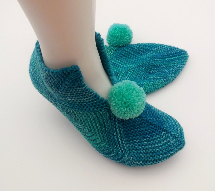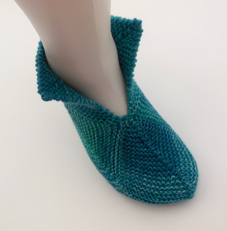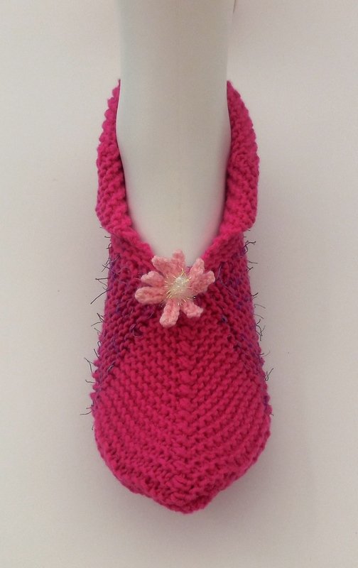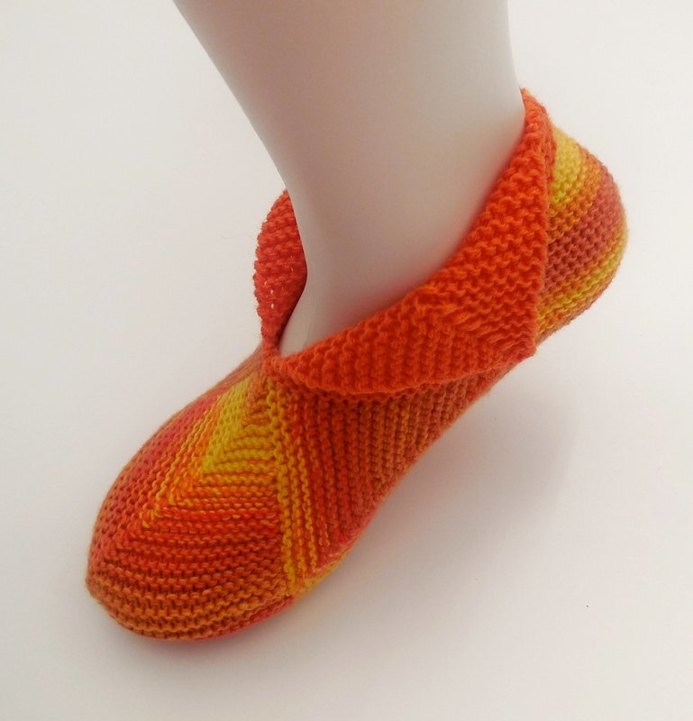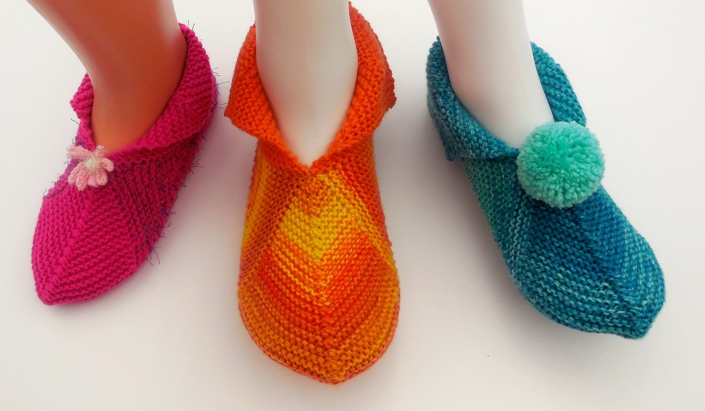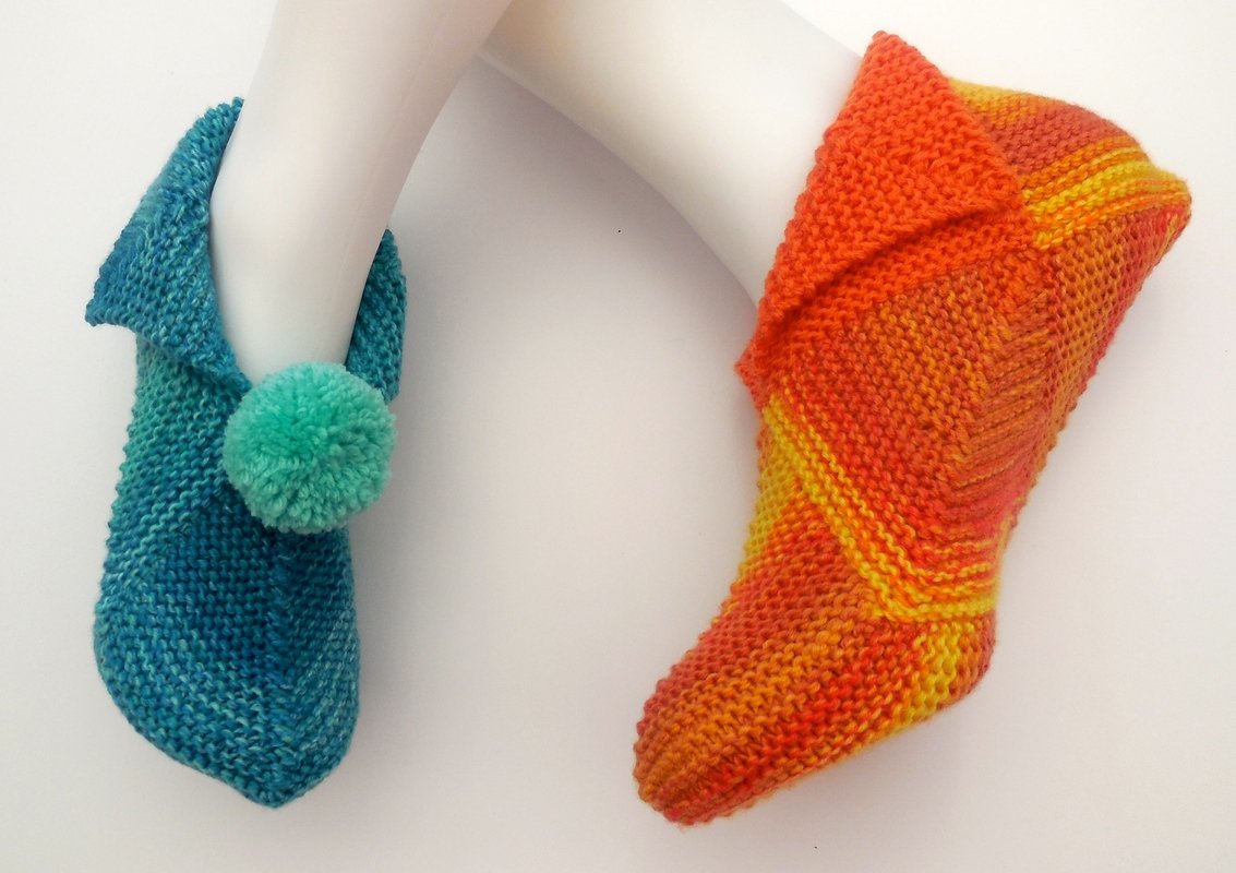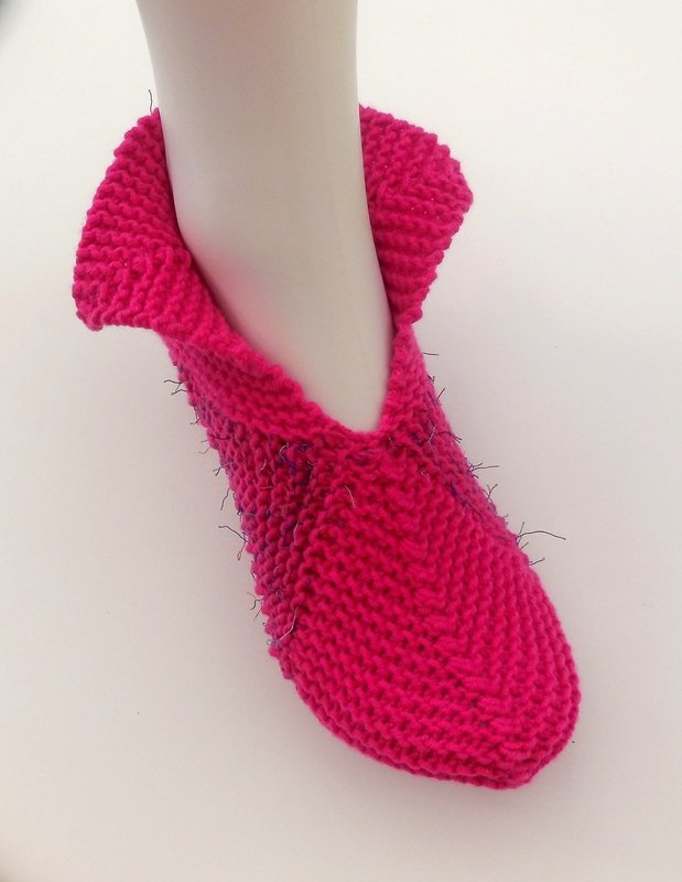 Diese Hausschuhe sind einfacher zu stricken als es aussieht. Für Strickanfänger jedoch wahrscheinlich nicht geeignet. Jeder Schuh besteht aus 8 Quadraten, die aneinander gestrickt werden.