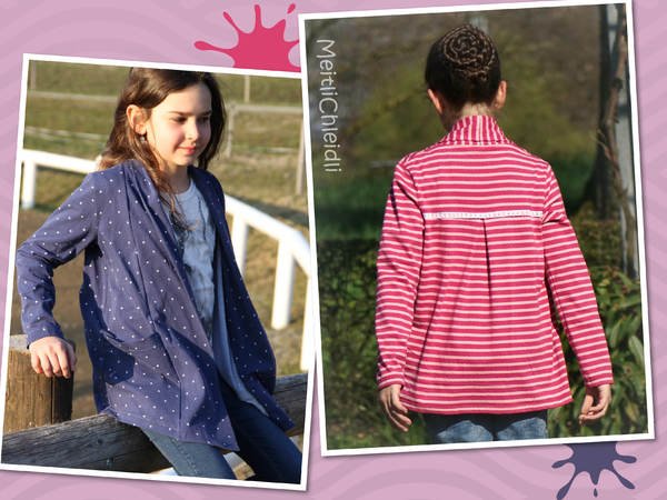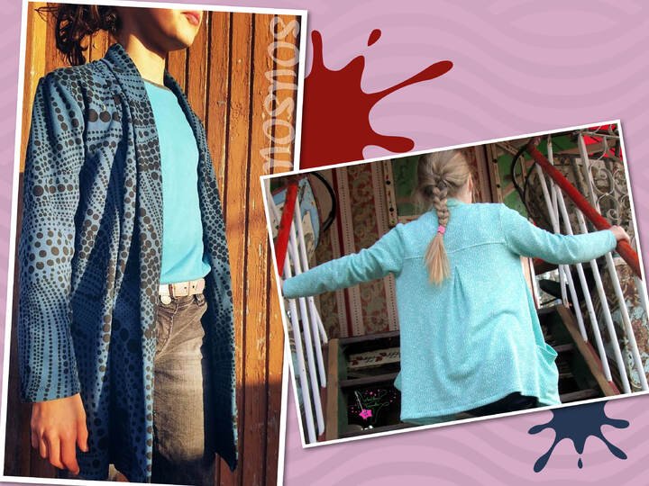 Der klecksMACS Cardigan "Open Sea" für Mädchen ist eine luftig-leichte Oberbekleidung für die Übergangszeit, aber auch an lauen Sommerabenden ein idealer Begleiter. Der breite Besatz an Vorder- bzw. Rückenteil dient als Schalkragen und fällt besonders schön mit dünnen, weich fließendem Stoff. Die abgeschrägten Taschen sind nicht nur praktisch, sondern auch ein zusätzlicher Hingucker. Je nach Wunsch kann der Cardigan mit langen oder kurzen Ärmeln genäht werden.