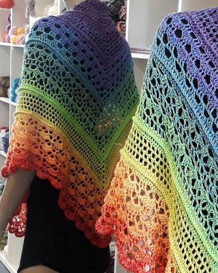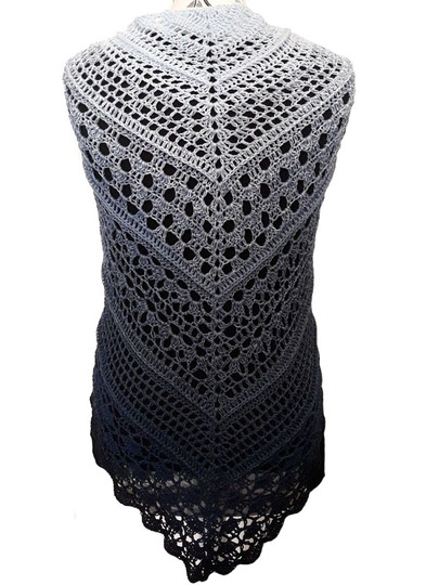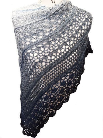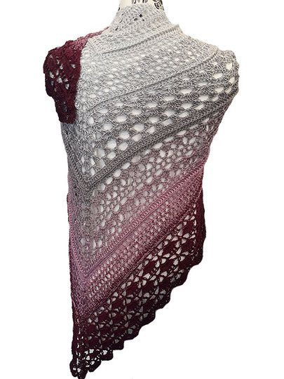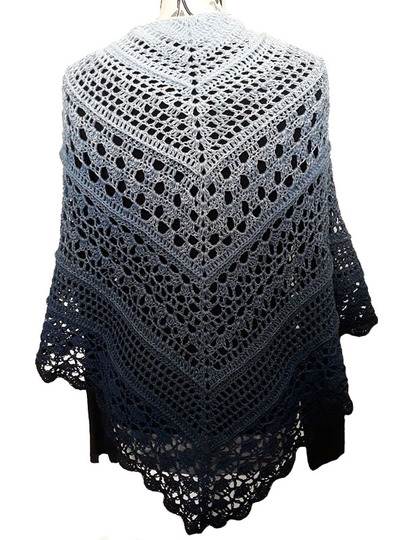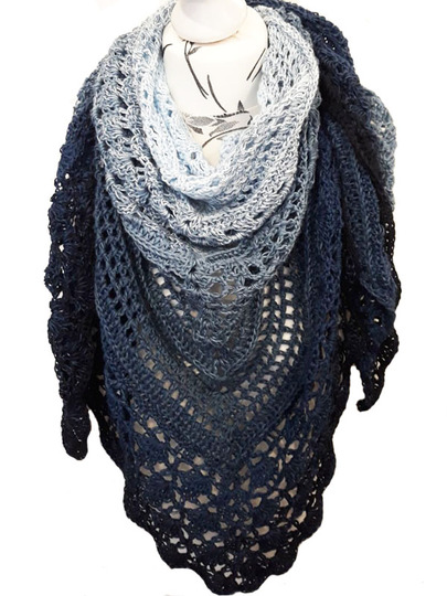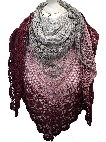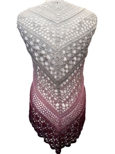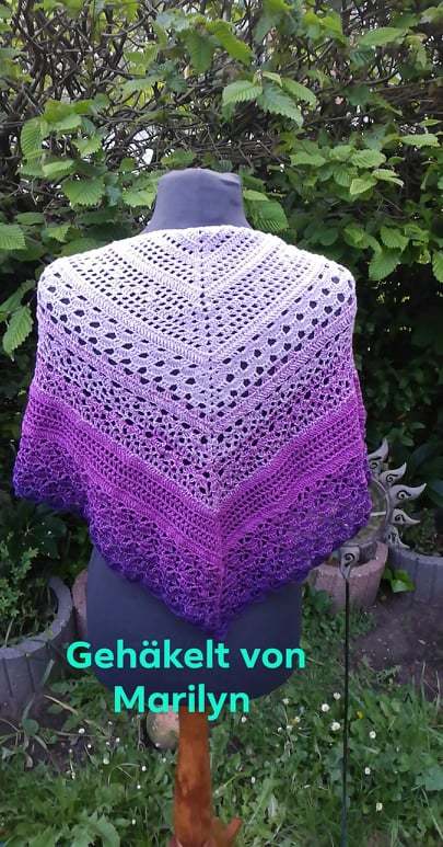 Das Tuch wird an der oberen Mitte begonnen und zur Spitze zu gehäkelt.