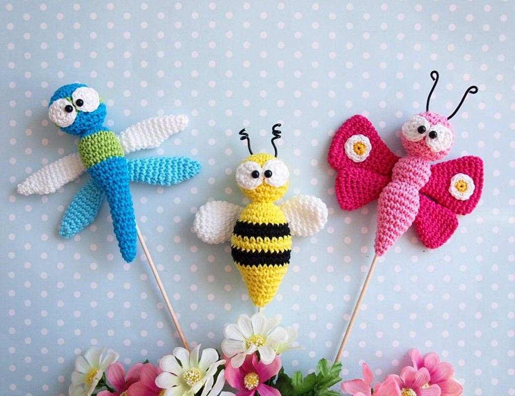 Spare mit diesem tollen 3er Pack und hole Dir die Häkelanleitungen für folgende Blumenstecker Tiere im günstigen Set: