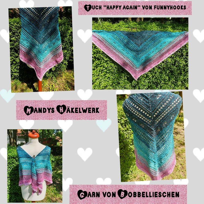 Das Tuch “happy again” besteht aus vielen einfachen Mustern, die ideal zum Frühling und Sommer passen.
