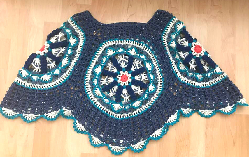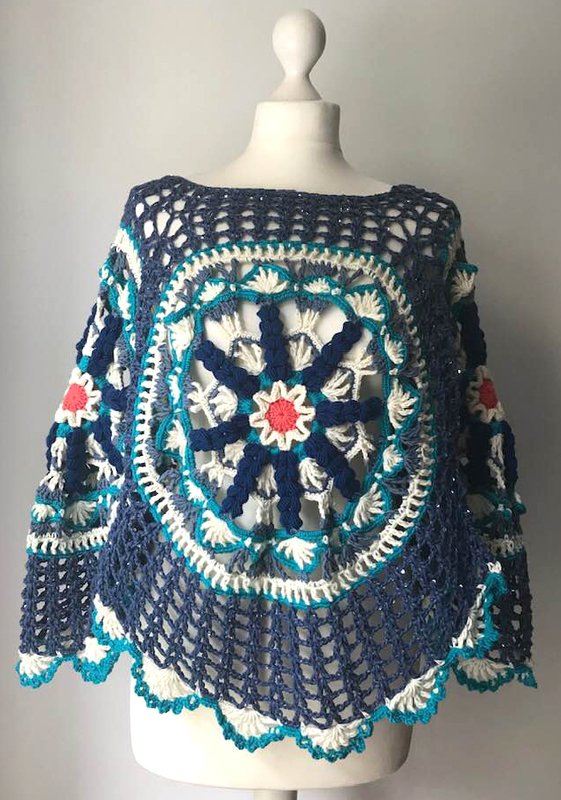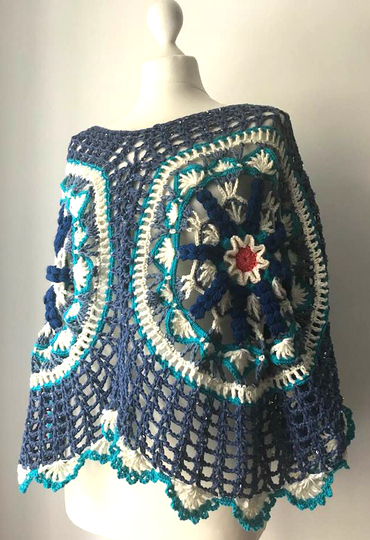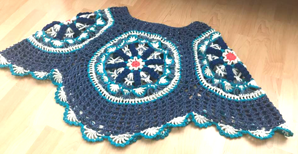 Der ausgefallene Poncho SONNENRAD ist ein herrliche Handarbeit...und sieht viel komplizierte aus, als er ist!