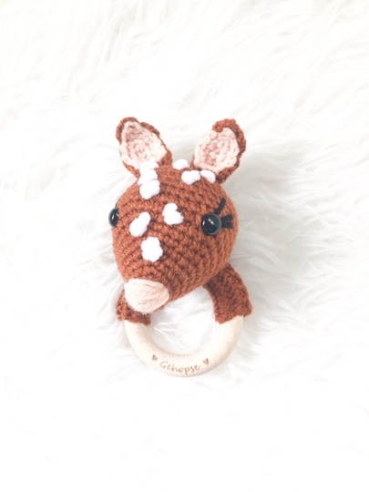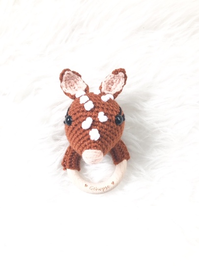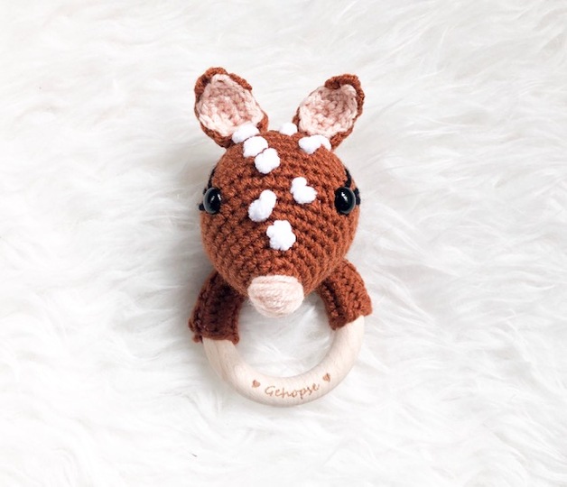 Mit dieser Häkelanleitung kannst du deine eigene süße Rehkitz-Rassel häkeln.