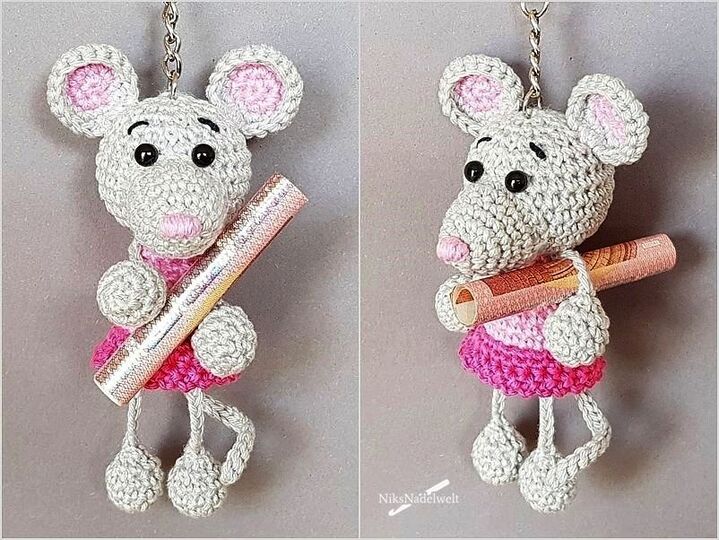 Marie ist ein ganz zauberhaftes Mäuschen, dass dich perfekt am Schlüssel, einer Tasche, oder am Autospiegel begleiten kann. Außerdem kannst du ein Geldgeschenk mit ihr sehr persönlich überreichen – Geldschein aufrollen, Marie in die Arme "stecken" und schon hast du ein perfektes Geldgeschenk. Ein Mäuschen schenkt Mäuse :D Als ständiger Begleiter und Glücksbringer oder als Geldgeschenküberbringer, sie wird bestimmt jedem ein großes Lächeln ins Gesicht zaubern.