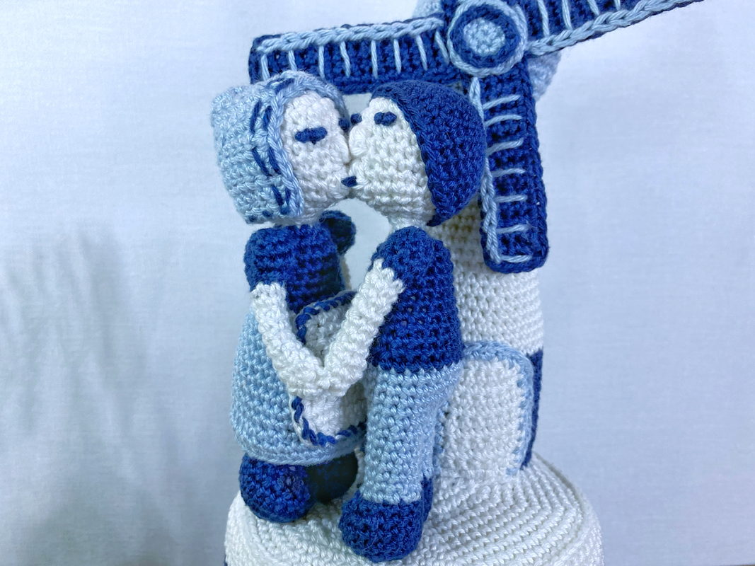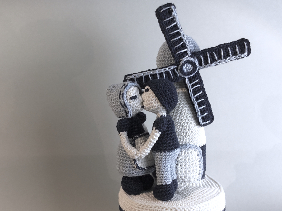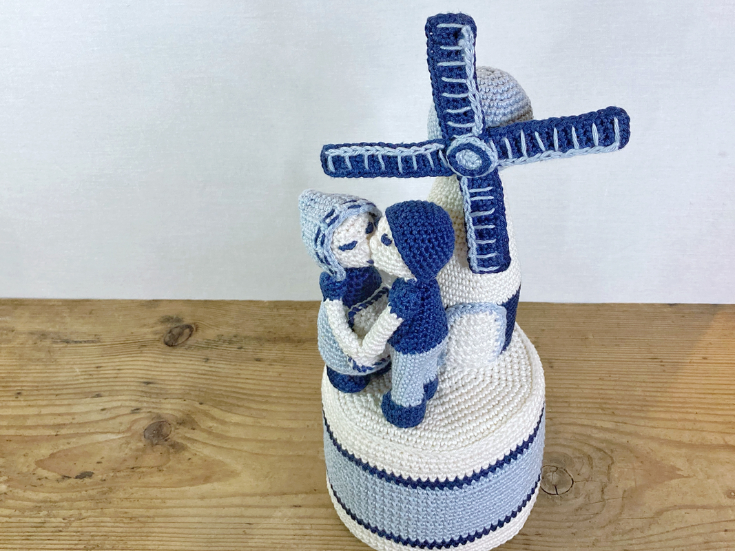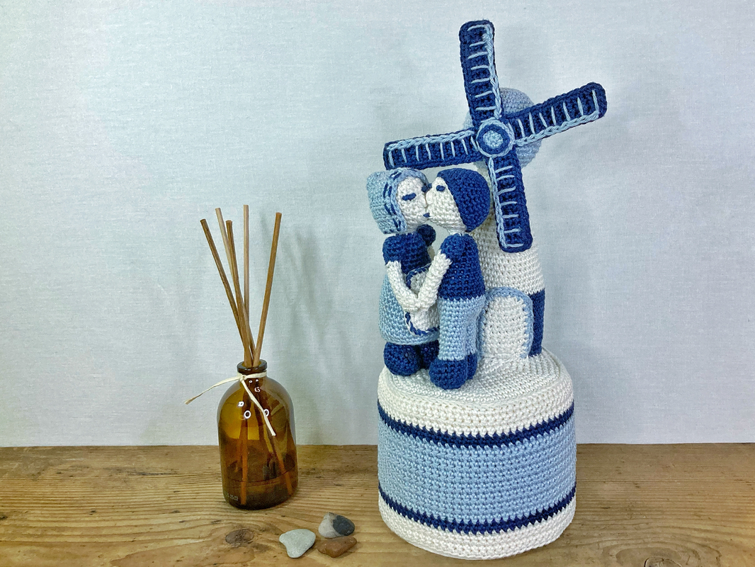 Da ich dort immer wieder auf das küssende Pärchen und die Windmühle in den Farben des delfter Porzellans gestoßen bin musste ich es unbedingt auf meine Art umsetzen.