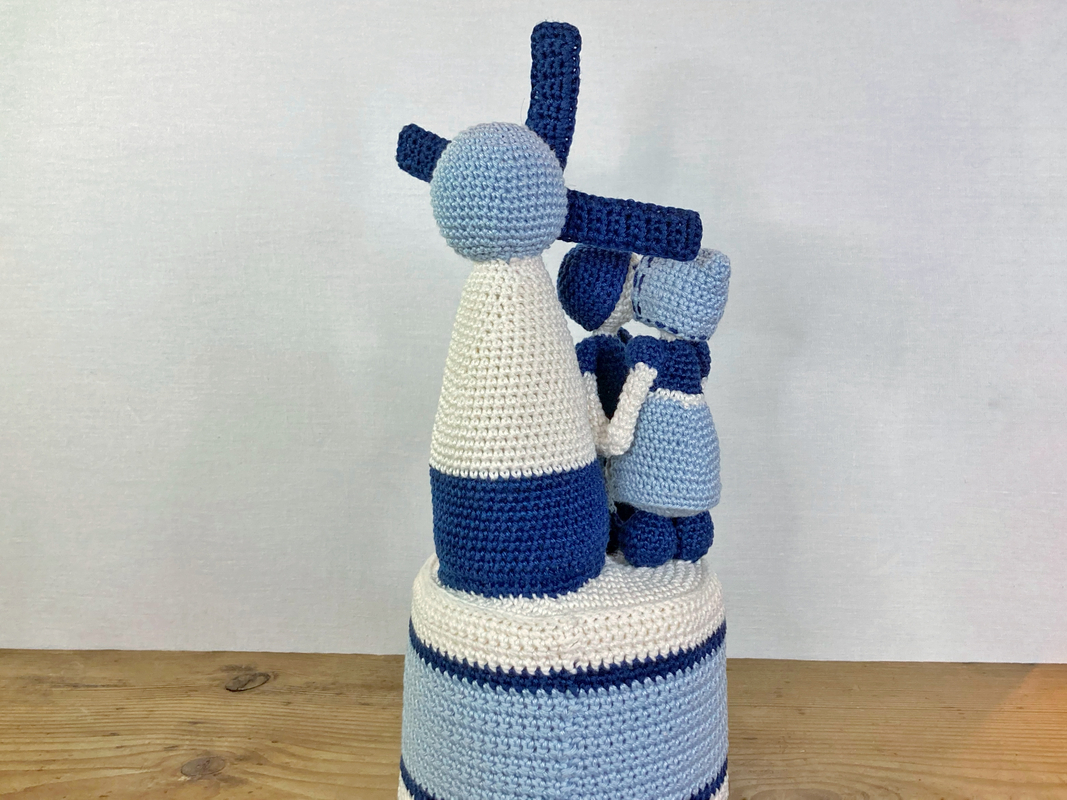 Gehäkelt mit Nadelstärke 3 ist der Klorollenhut mit den Figuren ca. 31 cm hoch