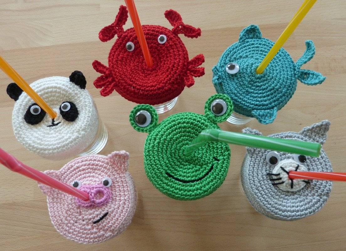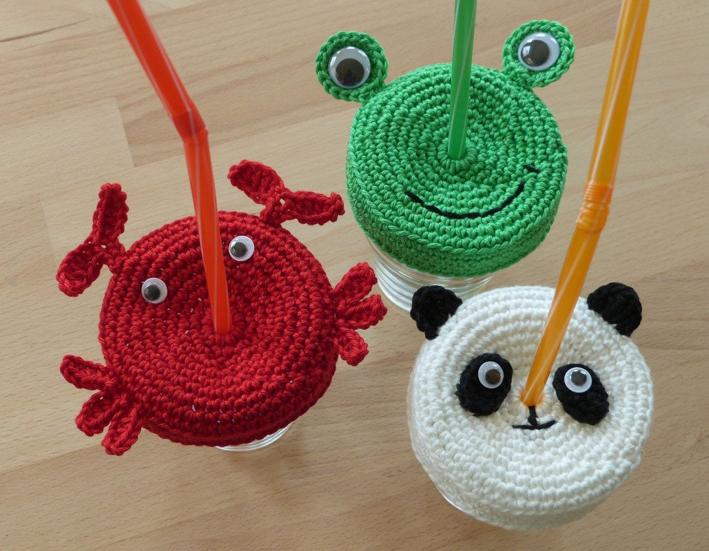 Die Anleitung zeigt dir, wie du ganz leicht die 6 Modelle Frosch, Katze, Schwein, Fisch, Krabbe und Panda häkeln kannst.