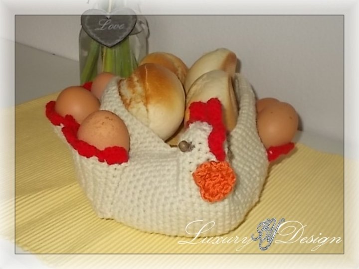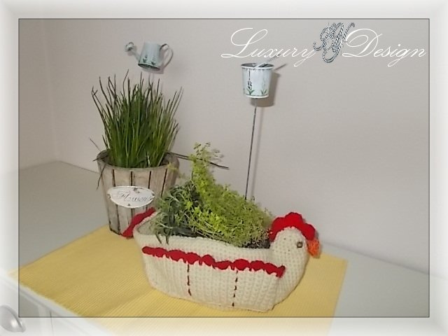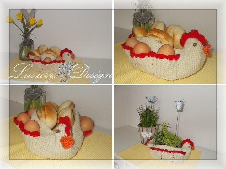 Weitere Verwendung kann der Korb in der Küche finden z.B als Aufbewahrung für Kräuter ,dieses Huhn ist immer ein Hingucker in der Küche oder auch als Deko im Esszimmer.