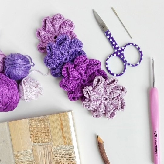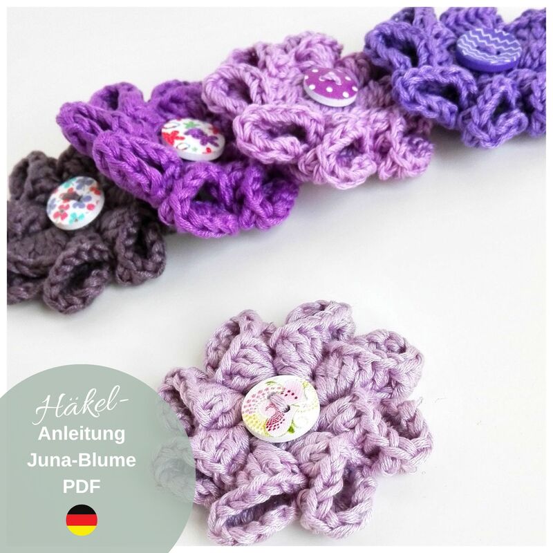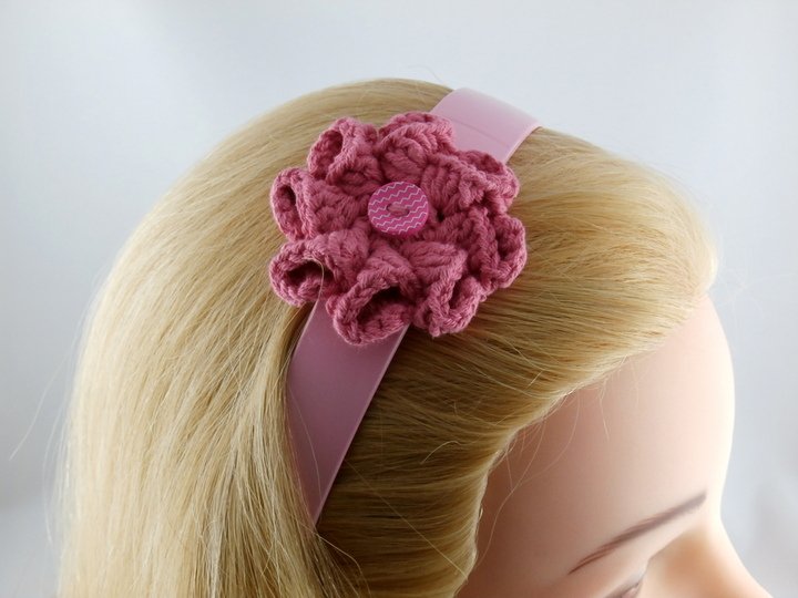 Die hübsche Häkelblume eignet sich perfekt zum Verzieren von Haareifen oder -bänder. Toll macht sie sich auch als Brosche oder Applikation auf einer Tasche etc.