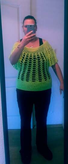 sie ist leicht zum nachhäkeln und sehr schnell gemacht ich habe Mädels dabei gehabt die haben das Top in einen Tag gehäkelt in größe 40