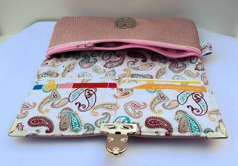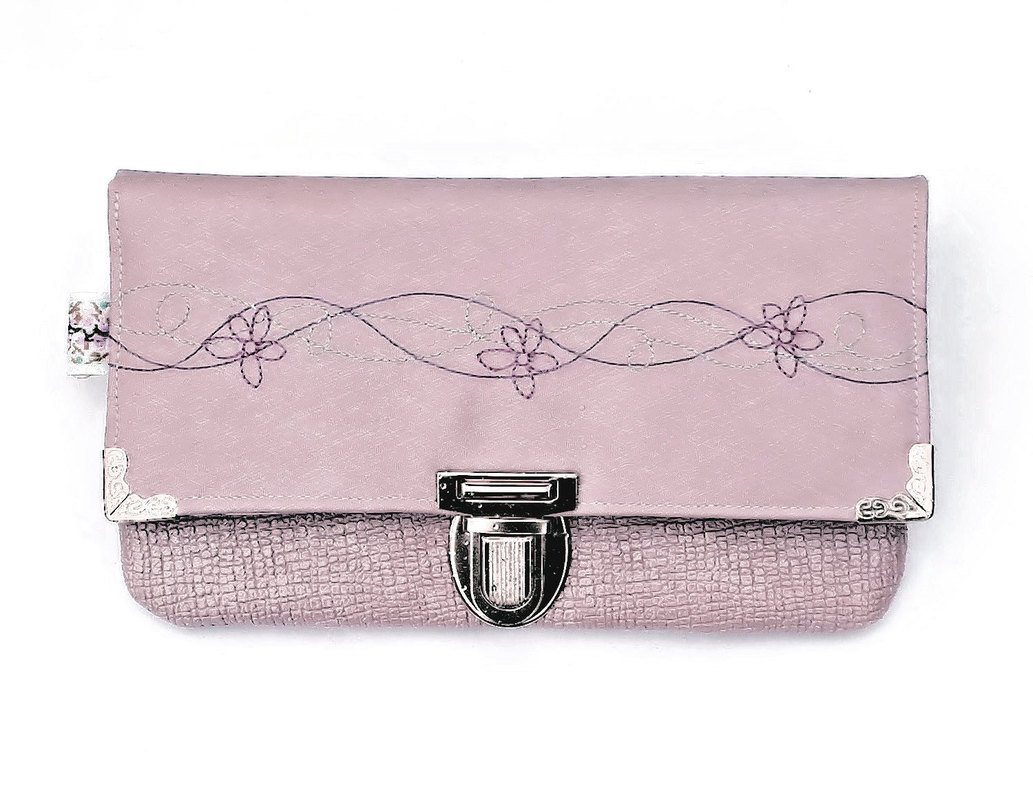 ITH Stickdatei einer großen Geldbörse mit vier Kartensteckfächern, einem offenen Fach für Scheine und einem Reißverschlusstäschchen für Kleingeld. Keine sichtbaren Innennähte und die Wendeöffnung liegt im inneren Geldscheinfach. Motiv einer Blütenranke auf der Klappe sowie auf der Rückseite. Das Set beinhaltet eine Rücken-, sowie 4 Frontdateien. Mit Motiv oder Blanko, einmal mit abgerundeten Ecken und jeweils einmal mit schwach gerundeten Ecken um Taschenecken aus Metall aufsetzen zu können. Gestickt wird in zwei Rahmeneinheiten, im 20 x 28 Rahmen. Eine ausführliche, bebilderte deutsche PDF-Anleitung liegt bei.