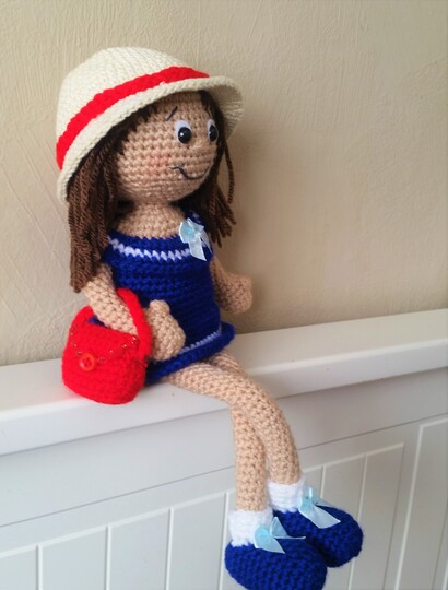 Frieda ist die Freundin von Smutje Hein. Sie hat sich für ihn richtig herausgeputzt und ihr Designertäschchen gepackt. Mit ihrem Kleidchen im Carmenstil möchte sie ihn betören ;-) .