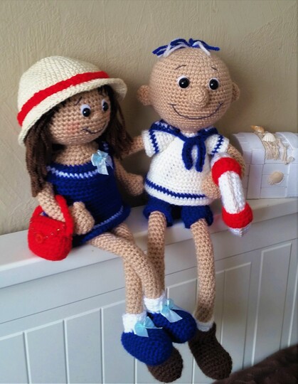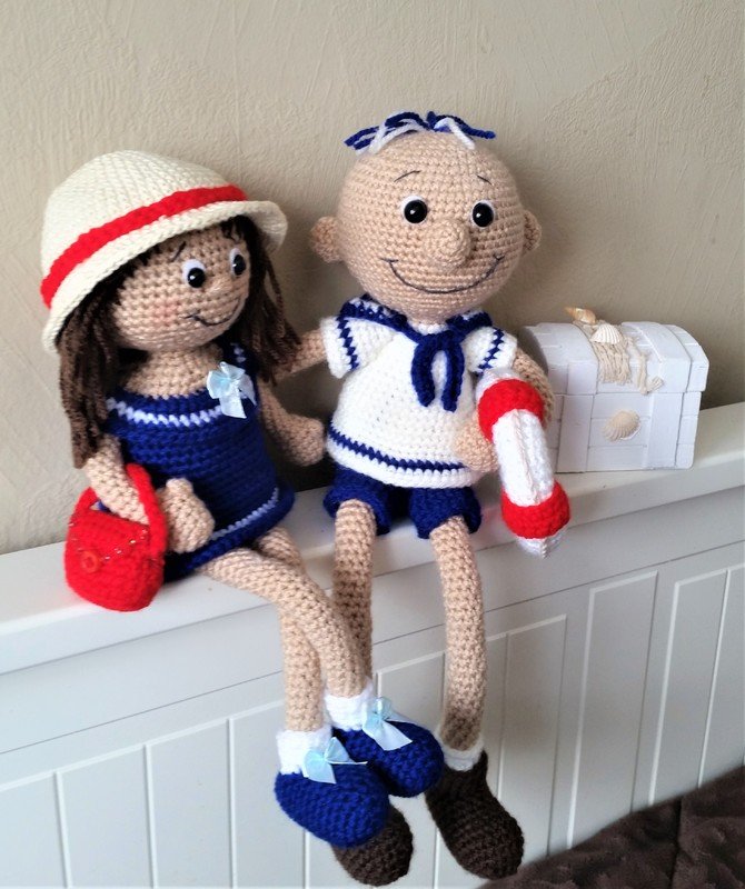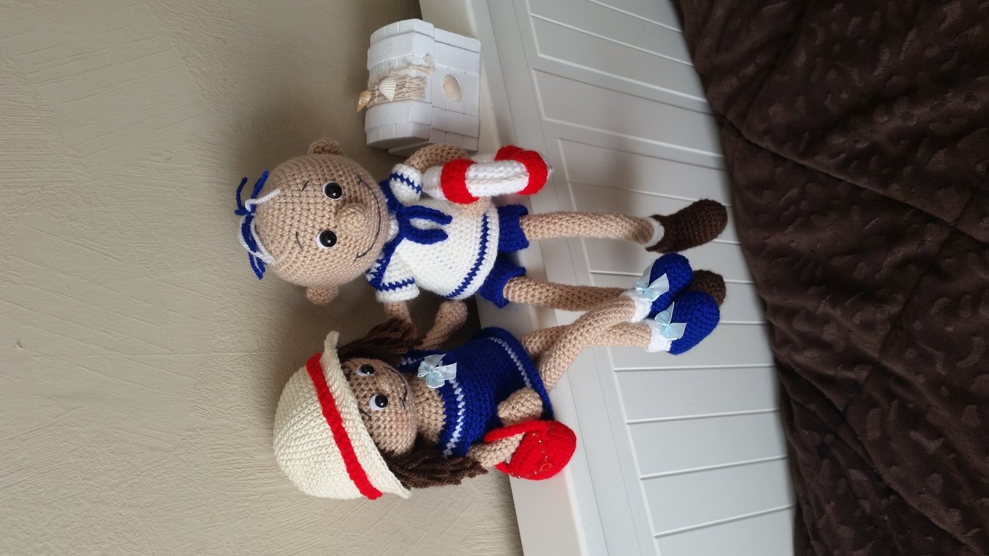 Die Garnwahl ist optional. Bitte achte darauf , dass alle Farben mit der gleichen Nadelstärke gearbeitet werden, da sich ansonsten die Proportionen verschieben. − Ca 30 Gr hautfarben − Ca 20 Gr blau − Restgarn weiß − Restgarn rot − Restgarn braun − Schleifchen zur Deko und optional Schmucksteinchen