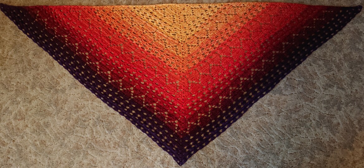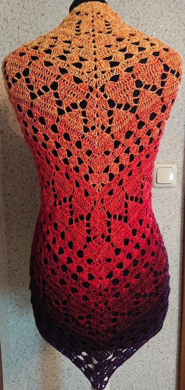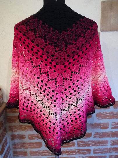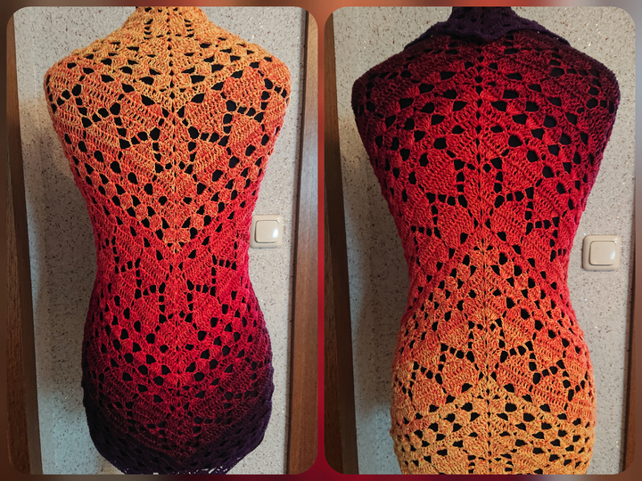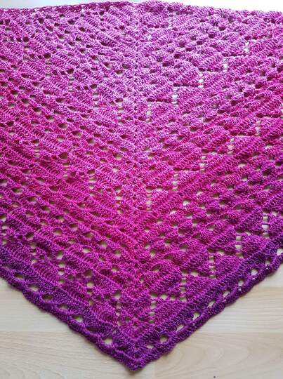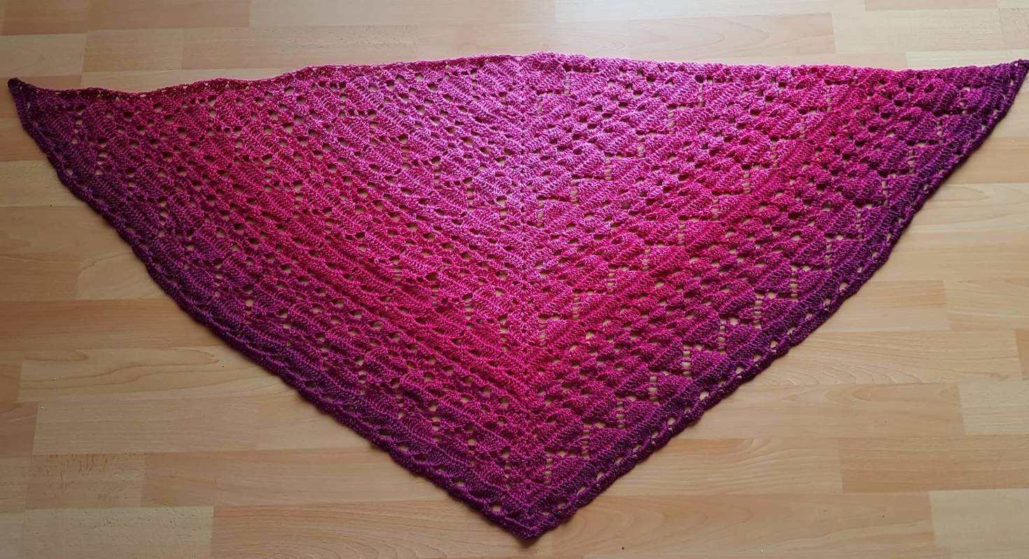 Das Tuch Irene besteht aus sich immer wiederholenden Reihen, die beim Häkeln Abwechslung bieten und im Gesamtbild ein paar schöne Herzen erscheinen lassen.