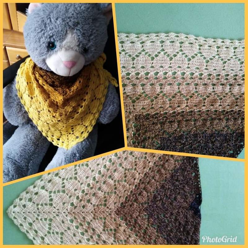 Die Anleitung zum Tuch besteht aus schriftlich ausformulierten Reihen und beinhaltete Häkelschriften.