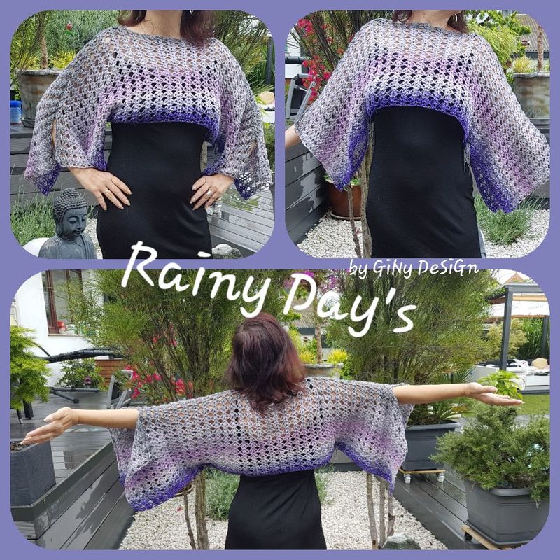 Rainy Day`s ist eine Armstola die in 2 Teilen gehäkelt wird, es ist ein sommerliches Teil das man über Tank - Tops, aber auch zum Abendkleid tragen kann, in kühlen verregneten Sommernächten, der miese Mai hat mich dazu inspiriert!