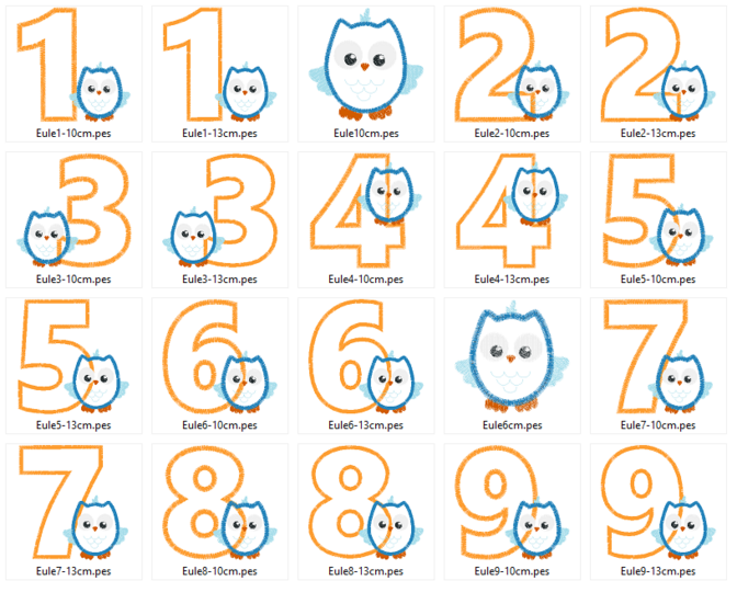 eine süße Eule mit Geburtstagszahl als Stickdatei