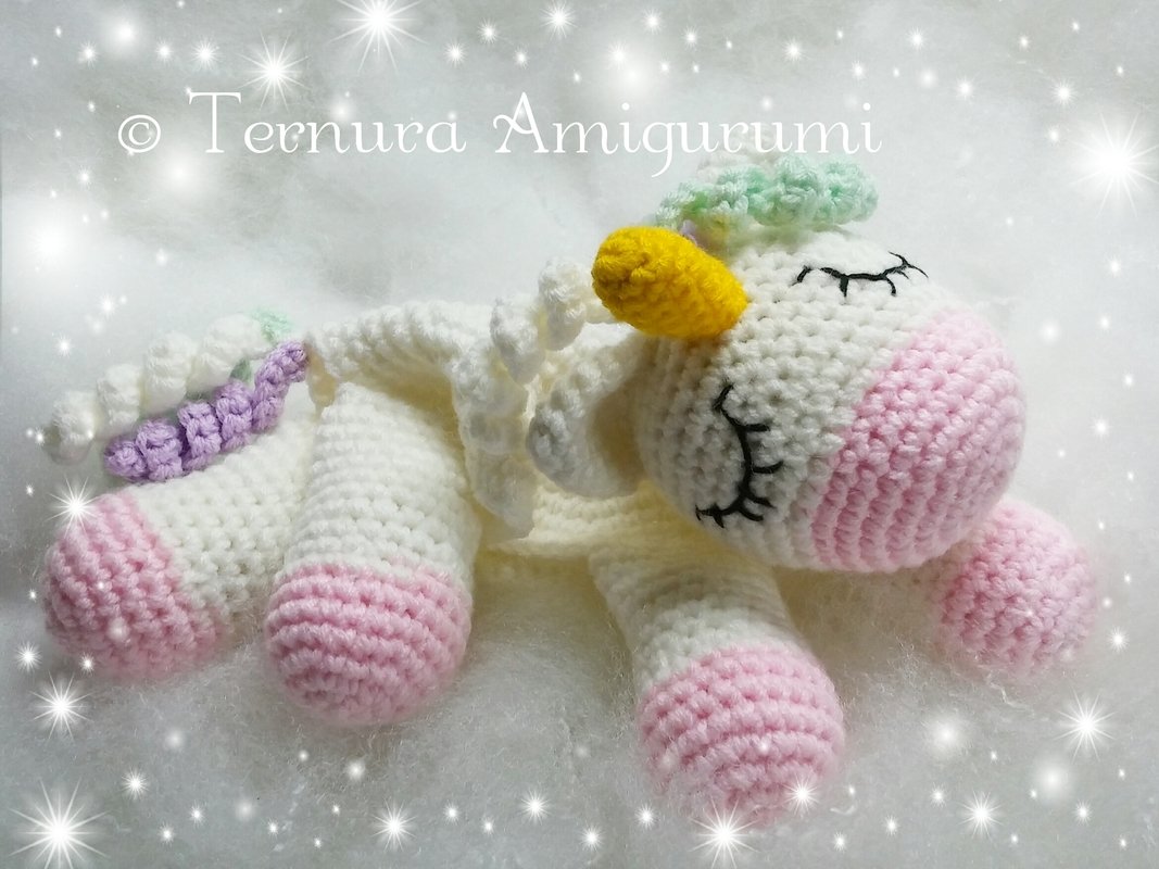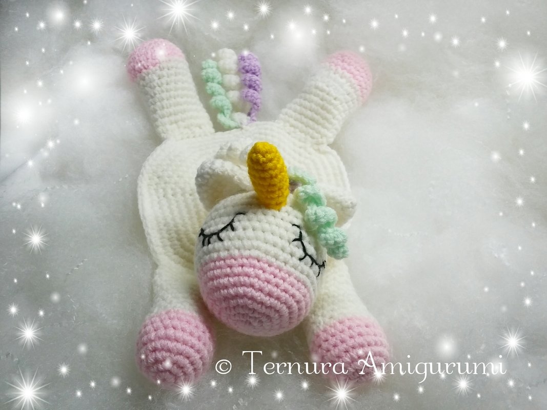 Dieses kuschelige Einhorn ist perfekt zum Dekorieren und Verschenken, es ist süß als Geschenk. Kinder und Erwachsene lieben es! Sie können eine Vielzahl von Farben herstellen. Sie können Plastikaugen platzieren oder Ihre Augen auf eine andere Weise sticken, um einzigartigere Einhörner zu kreieren! Die fertigen Maße betragen ca. 28 cm x 20 cm. Sie können die Größe mit Nadel und Dicke der Wolle anders als angegeben variieren.