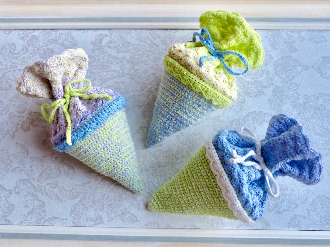 Hier bekommt ihr die Häkelanleitung für eine kleine Schultüte, die mit Süßigkeiten oder kleinen Geschenken gefüllt werden kann oder als Tischdekoration geeignet ist.