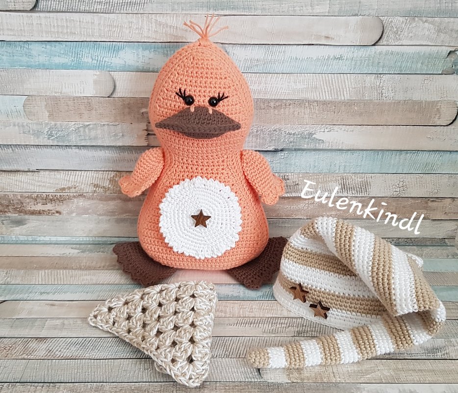 Die Schlummer-Ente wurde mit Baumwollgarn (50g-115m) und einer 3,0 Nadel gehäkelt.