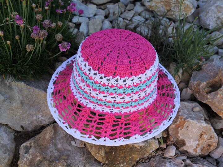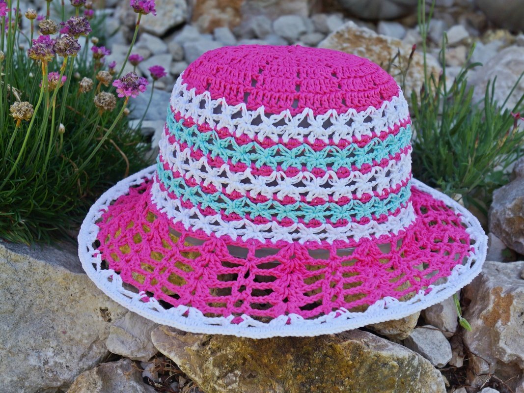 In meinem Shop gibt's auch diesen schöne Sommerhut zum Häkeln: https://www.crazypatterns.net/de/items/29050/haekelanleitung-sommerhut-in-allen-groessen