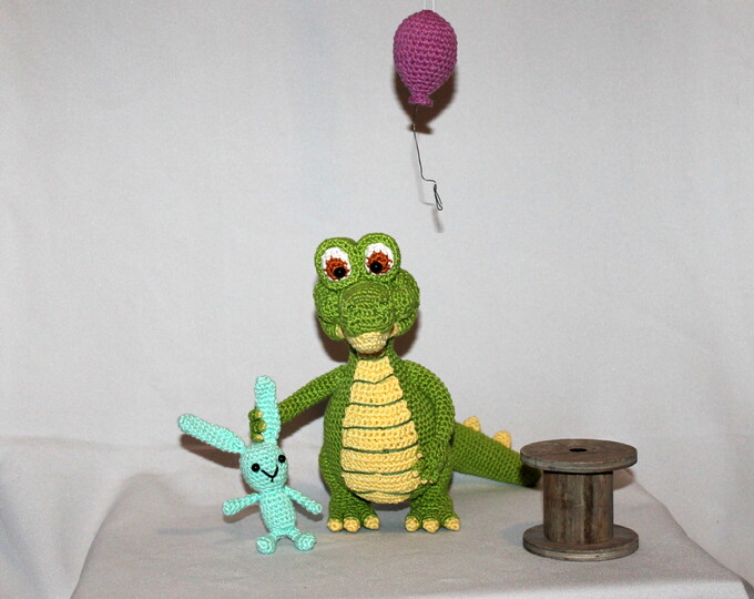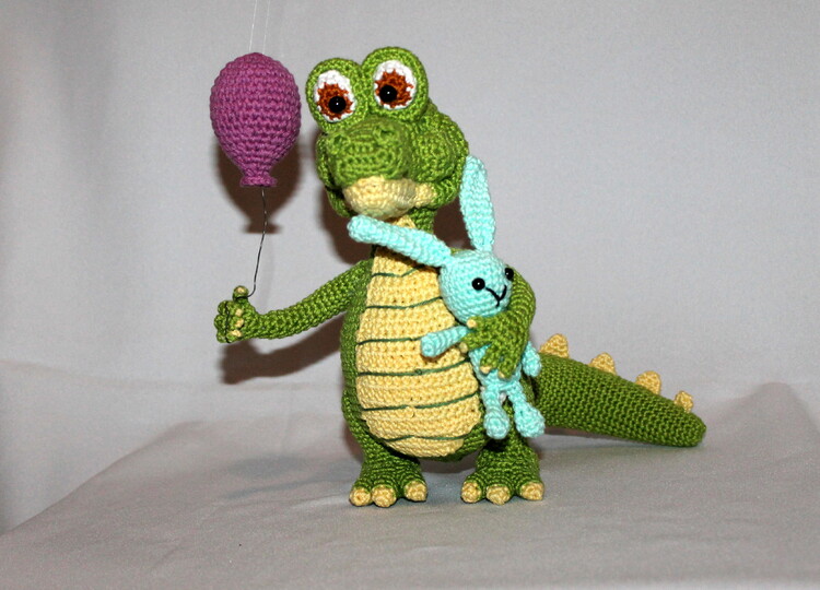 Carolin ist ein noch recht junges Krokodil, das überall hin mit seinem kleinen Kuscheltier Hasen geht.