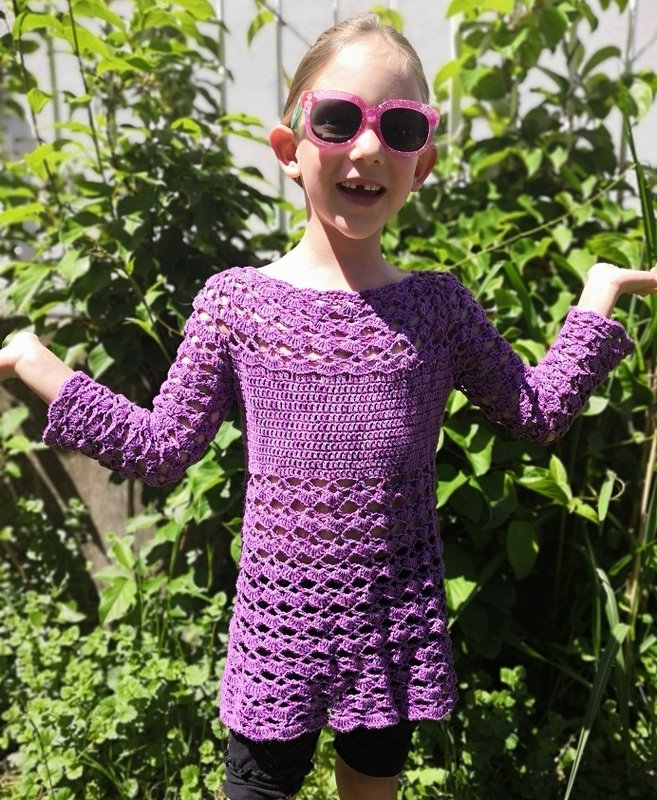 Mit dieser Anleitung kannst Du eine bezaubernde Tunika für kleine und größere Mädchen häkeln. Bezüglich der Farbauswahl und des Designs sind Deiner Fantasie keine Grenzen gesetzt – ob Kurzarm, 7/8-Arm oder Langarm, ob edel einfarbig, meliert oder fröhlich bunt gestreift, ob sommerlich-luftig oder eher blickdicht gehäkelt – alles ist möglich.