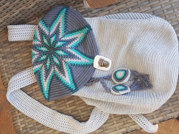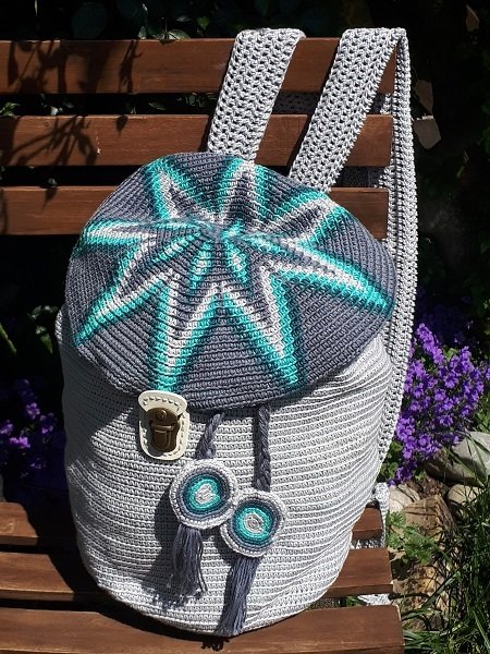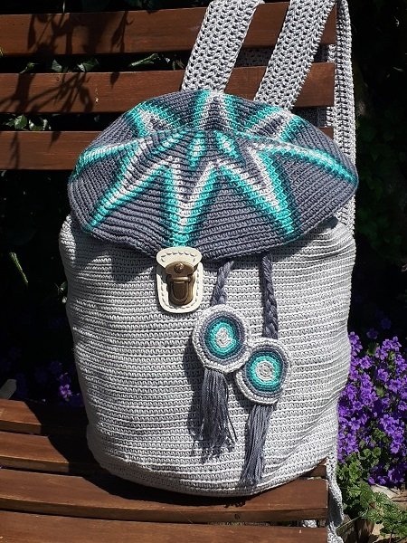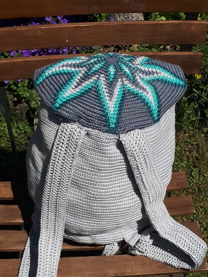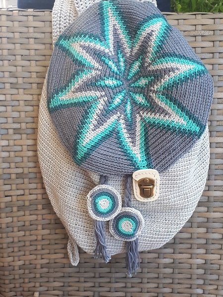 Hier habe ich wieder ein absolut einzigartiges Produkt für den modebewussten Liebhaber von Handarbeit. Man nennt diesen Stil Mochila. Das Muster und die Farben sind so gewählt, dass der Rucksack für Sie und Ihn gleichermaßen mit Stolz getragen werden kann :-)