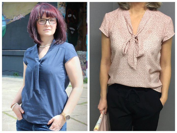 Alma ist eine locker sitzende Sommerbluse bzw. Sommerkleid, mit dekorativem Schleifenband am Ausschnitt oder einfachem V-Ausschnitt. Genäht wird sie aus Webware, es eignen sich alle weich fallenden Blusen- bzw. Kleiderstoffe, wie z.B. Viskose, dünne Baumwolle, Seide, dünner Jeans und vieles mehr.