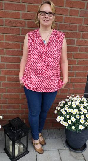 Im E Book sind wieder verschiedene Varianten enthalten: ärmellos oder mit kurzen Ärmel, mit Schleife oder V-Ausschnitt, Saum entweder gerade oder hinten länger und abgerundet oder das Ganze als Kleid, mit Tunnelzug oder ohne. Alma gibt sich, je nach Stoff, lässig für die Freizeit oder auch schick für Büro und andere Anlässe.