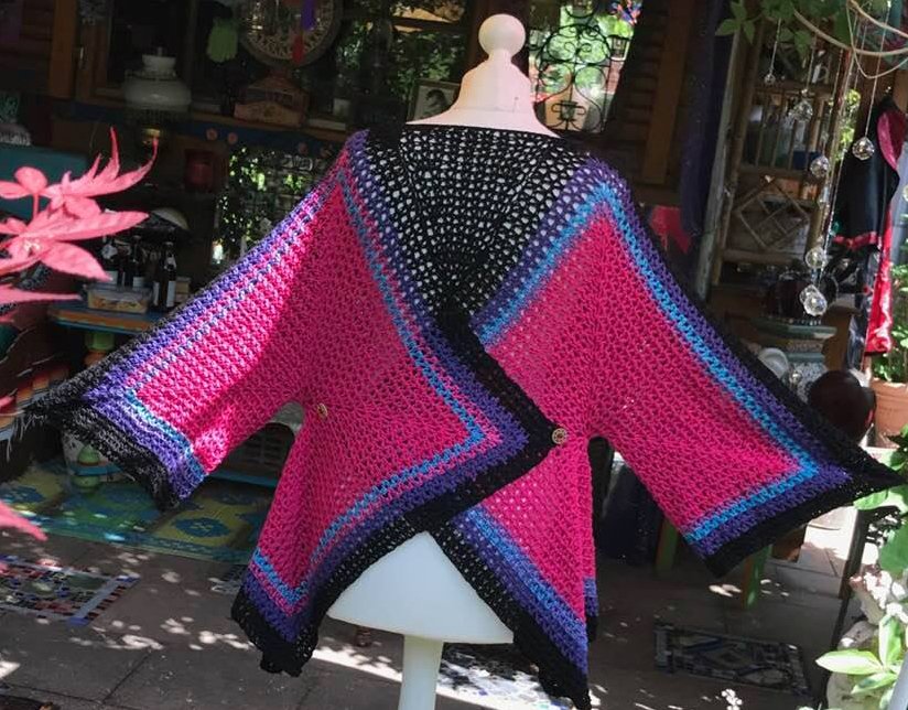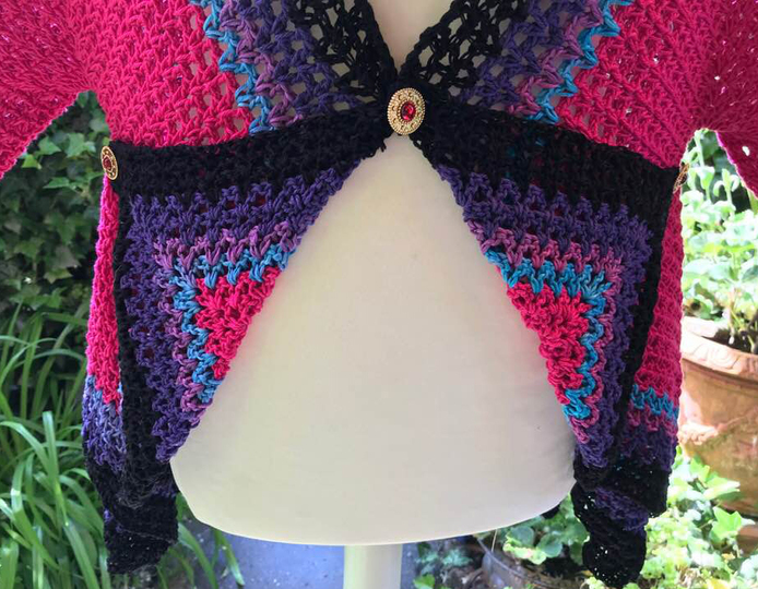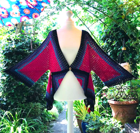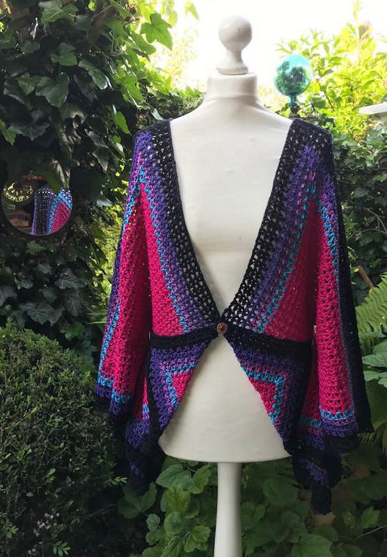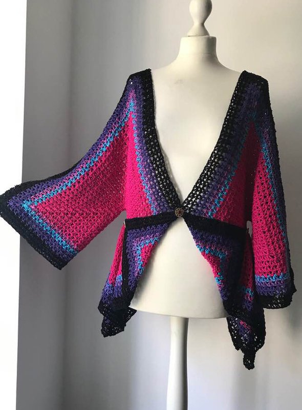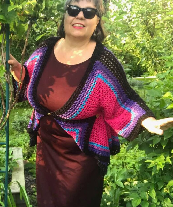 Die Sommerjacke "SILBERSTÜCK" wiegt fertig 580 gr und passt für die Größe 42-54 super..kann aber auch genauso kleiner ( etwas weniger Wolle ) und größer ( mehr Wolle ) gehäkelt werden