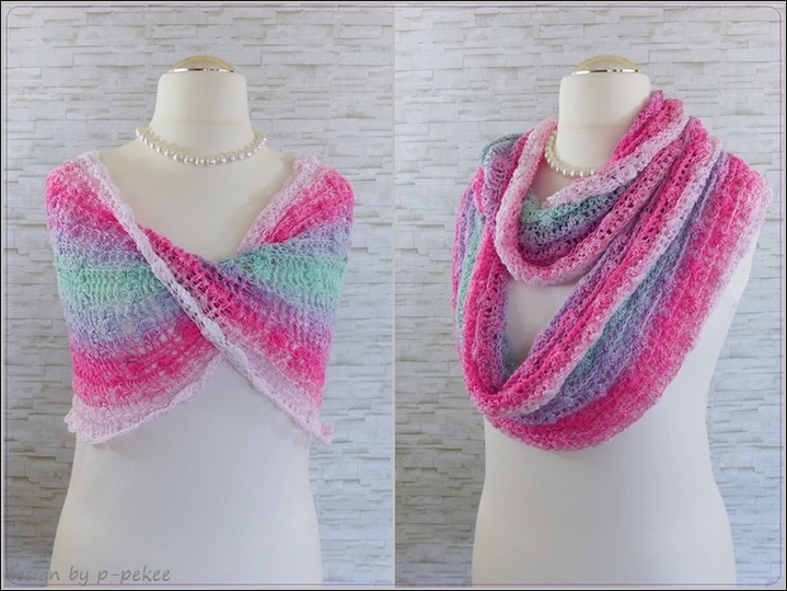 "Merina" ist ein Möbiusschal mit dezentem Muster. Das Muster ändert sich nur alle zwei Reihen. Daher leicht zu merken.